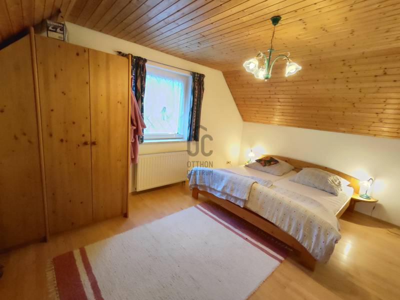 Kiemelt megbízás kizárólag irodánk kínálatában!Kisapáti festői környezetében, a Szent György-hegyen kínálunk eladásra egy 3593 m²-es telken fekvő nyaralót, amely állandó lakhatásra is alkalmas. Az ingatlanról csodálatos panoráma tárul elénk, így tökéletes választás pihenésre vagy állandó otthonnak is.Ingatlan jellemzői:-Fekvés: Kisapáti, Szent György-hegy, balatoni panorámaSzintek: -Alsó szint: nappali-konyha-étkező, pince -Felső szint: közlekedő, 2 hálószoba, fürdőszoba, WC-kézmosóMűszaki felszereltség:-Víz és villany (3x25A) bekötve-Szennyvíz zárt derítőbe (5 m³)-Esővíz gyűjtésére ciszternaFűtés:-Alsó szinten alapfűtés cserépkályha, továbbá elektromos kazánról 3 zónás padlófűtés, felső szinten radiátorok.Építés és hőszigetelés: -Phorotherm tégla -Külső falak és pincefödém: 5 cm hungarocell -Aljzatlemez belső oldalán: 12 cm hungarocell -Emelet födéme: 15 cm hungarocell + belső oldali párazáró fóliaEz az ingatlan tökéletes választás azoknak, akik nyugodt környezetben, mégis a Balaton közelségében keresnek otthont vagy nyaralót.Érdeklődés esetén hívjon bizalommal, ne hagyja ki ezt a különleges lehetőséget!Az adatok kizárólag a megbízóink által rendelkezésünkre bocsátott információkon alapulnak.Fentiekre tekintettel, az adatok teljességéért, helyességéért és aktualitásáért nem vállalunk felelősséget.Az árváltozás, adatmódosítás és közbeni értékesítés jogát fenntartjuk, mindezekért jogi felelősséget nem áll módunkban vállalni.