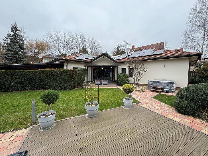 ÜRÖMÖN, A VÖLGYLIGETBEN ELADÓ EGY KIVÉTELES, TELJES KÖRŰEN FELÚJÍTOTT, FÖLDSZINTES CSALÁDI HÁZ!Telek mérete: 920 nmA KÖRNYÉKBudapest közvetlen határában, kiváló adottságokkal rendelkező, igényes családi házas övezetben található. Fiatalos környezet, tágas, karbantartott utcák, kedves és összetartó lakóközösség jellemzi.A buszmegálló 8 perc (550 m), a vasútállomás 11 perc (750 m) sétára érhető el. Az ürömi Lidl autóval 4 perc, gyalogosan kb. 12 perc.A HÁZ JELLEMZŐI-A telken két épület található: Főépület: 168,28 nm Kisház: 44,62 nm-Plusz 17,48 nm-es fedett terasz-Plusz dupla beállásos, fedett kocsibeállóFŐÉPÜLET-2000-ben épült, 38 cm vastag POROTHERM téglából, 10 cm-es Dryvit szigeteléssel-2021-ben teljes körű felújításon esett át-Kerámiacseréppel fedett tető, monolit vasbeton födém 15 cm szigeteléssel-Előkészítve egy további szint ráépítésére-3 rétegű műanyag nyílászárók, kívül-belül fahatású kivitelben-Szúnyoghálóval és elektromos redőnnyel felszerelve-Fűtés: tartályos, kondenzációs kombi kazán-Padlófűtés, a szobákban radiátorok-1 db 5,3 kW-os LG inverteres klíma + 2 db Daikin klíma-47 db napelem, melyek fedezik az ingatlan teljes áramfogyasztását, valamint 2 elektromos autó töltését-Kamerás kaputelefon, infraérzékelők, éjjellátó kamerás riasztórendszer-A vizes helyiségekben mozgásérzékelős üvegajtók-Szülői hálószoba saját gardróbbal és fürdőszobával-Plafonba épített hangrendszer-A nappali nagy tolóajtóval rendelkezik, közvetlen kertkapcsolattalKISHÁZ (44,62 nm)-2000-ben épült, 38 cm vastag POROTHERM téglából, 10 cm Dryvit szigeteléssel-2022-ben teljes körű felújításon esett át-Fűtés: kondenzációs kombi kazán-4 személyes finn- és infra szauna-3 rétegű, kívül-belül fahatású műanyag nyílászárók-Központi Daikin klímarendszerKERT-2 db fúrt kút-Kiépített öntözőrendszer-7 × 4 méteres, 140–150 cm mély medence-Jakuzzi-Épített kemence, sütögető és kerti konyhaA ház kizárólag a teljes berendezéssel együtt vásárolható meg, melynek ára: 30 millió forint.FINANSZÍROZÁSAz ingatlan tehermentes, banki finanszírozással is megvásárolható. Irodánk ingyenes hiteltanácsadással áll rendelkezésre.Vevőink részére a közvetítés díjmentes!A hirdetésben szereplő adatok tájékoztató jellegűek.