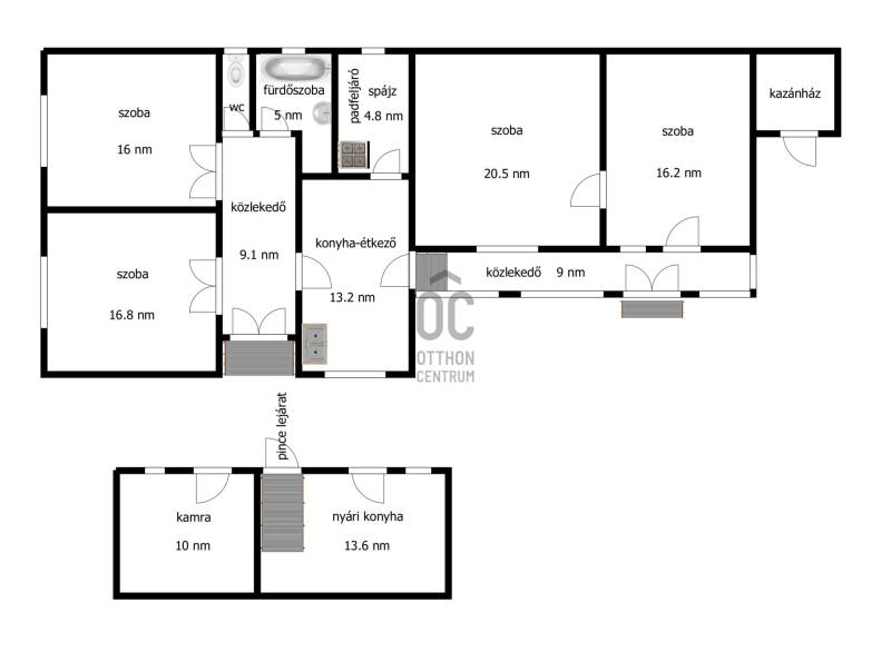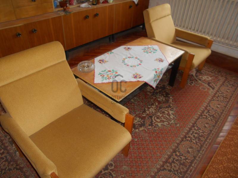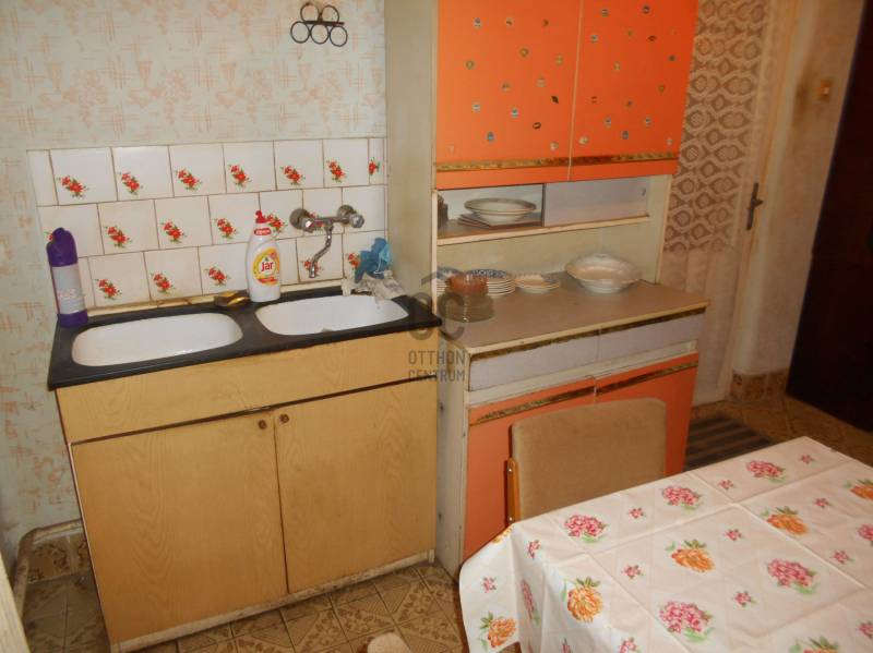 Megvételre kínálok Szabolcsbákán, főutcán egy átlagos állapotú, palával fedett családi házat melynek az első része (66.5 nm) a 80-as éveben B-30-as téglából, míg a hátsó, felújítandó/bontandó (45 nm) traktus vályogból épült, 1176 nm-es 22 méter széles telken. Az ingatlan két utcafronti szobáját keményfa parkettával, a többi helyiséget (az előszobát, a konyha-étkezőt, a külön wc-t, fürdőszobát) járólappal, valamint a hátsó részen található két szobát pvc -vel burkolták. A nyílászárók még az eredetiek, fából készültek, a melegről központi fűtés gondoskodik, ami gáz, illetve vegyes kazánnal is működtethető. Az udvaron egy különálló, teljesen alápincézett nyári konyha valamint kamra-tároló található.Szabolcsbáka eladó családi házAz ingatlanról készült videó megtekinthető: http://youtu.be/-Kig6FCAeco