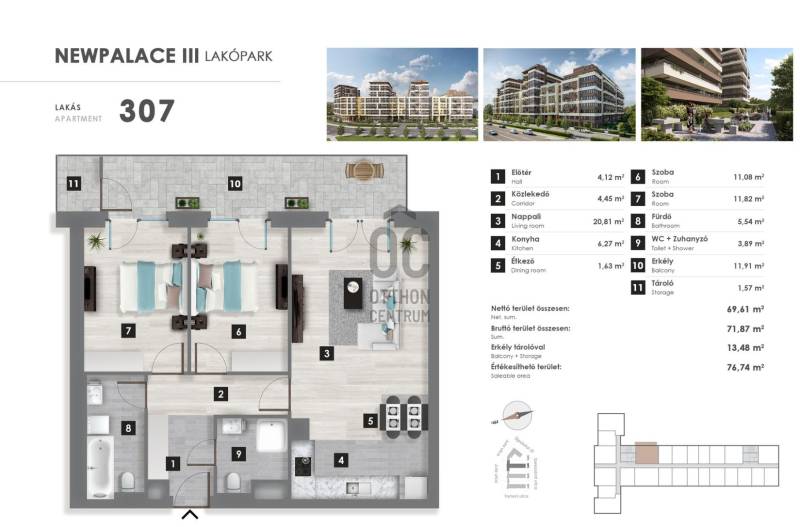 Modern, világos, energiatakarékos lakás eladó a Duna Plaza közvetlen közelében!XIII. kerület – New Palace Lakópark III. ütem3. emelet | 69,61 m² | 11,91m² erkély | 3 szoba |2026 év végén költözhető | 5% ÁFA visszaigényelhető a vételár egy részébőlModern, világos, energiatakarékos lakás eladó a Duna Plaza közvetlen közelében, dél-keleti fekvéssel, belső kertre néző erkéllyel, Prémium nyílászárókkal, mennyezeti hűtés-fűtéssel, alacsony rezsivel, Nyugodt környezetben, mégis minden karnyújtásnyira van: bevásárlás, sport, parkok, Váci úti irodafolyosóKözlekedés kiváló:M3-as metró, buszjáratok, Újpest vasútállomás, gyors kijutás az M3-as autópályára.Kötelező teremgarázshely vásárlás: 7,19 M Ft.Ideális első otthonnak vagy befektetésnek a XIII. kerület legdinamikusabban fejlődő részén!