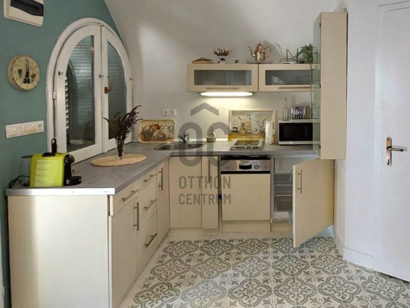A Kisfaludy útról nyíló zsákutcában jó megközelíthetőséggel rendelkező felújított apartmant közel 50 nm terasszal ajánljuk figyelmébe. Az ingatlan főbb jellemzői: - A ház jelenleg használt 22 nm-es lakrészén a konyha-étkező-háló mellett egy fürdőszoba került kialakításra. - A ház hátsó részében található 14 nm-es borfeldolgozó átépítésével a lakótér növelhető. - Az épület oldalánál kialakított téli kert mozgatható elemekkel igény szerint nyitható-zárható. - A lakótér fűtését az elektromos panelek mellett fatüzelésű kandalló is biztosítja. - A felszerelt hűtő-fűtő klíma télen-nyáron gondoskodik a megfelelő hőmérsékletről. - Vezetékes víz – ami a hegyen kincs, és nem mindenhol elérhető rendelkezésre áll.- A 839 nm-es területen lépcsőzetes kialakítású, bazaltkő támfallal tagolt fűszerkert található- A 25 nm-es fém üvegházban szinte minden megtermelhető- Az autó tárolásra és beállásra fedett autótároló készült, melyet elektromos kapu nyit.- Az épület riasztó rendszerrel rendelkezik- Az épület előtti bazaltkővel kirakott terasz jó időben tökéletes helyszín a pihenésre, és a szabadtéri étkezésre lenyűgöző panorámával a Balatonra és a környező településekre.Ha kisméretű, könnyen karbantartható nyaralót keres, vagy szálláskiadásban gondolkodik, úgy tökéletes választás a meghirdetett ingatlan!Amennyiben felkeltettem érdeklődését, úgy várom hívását!