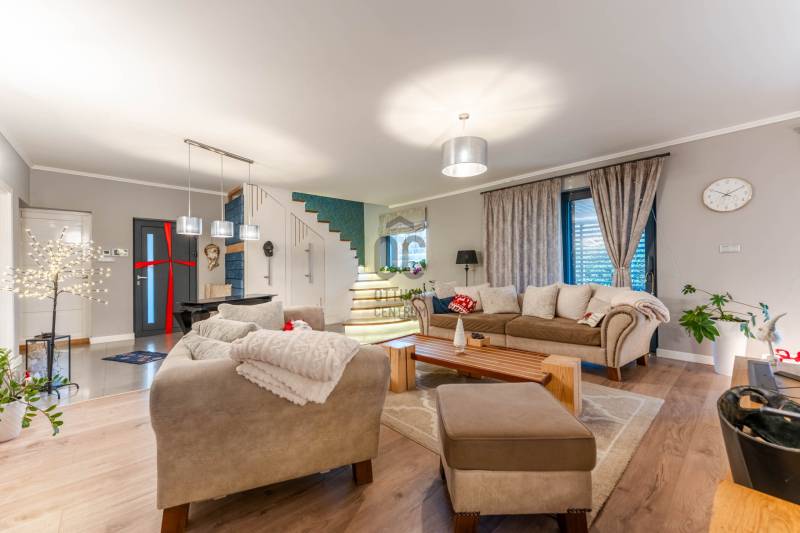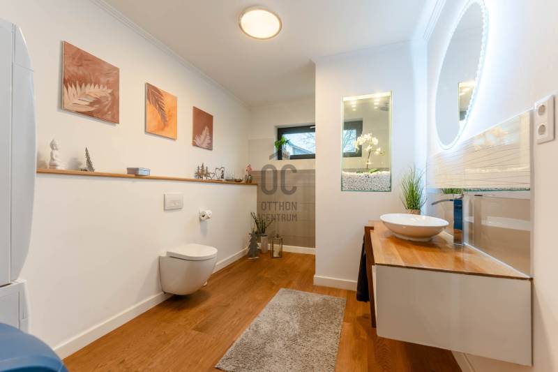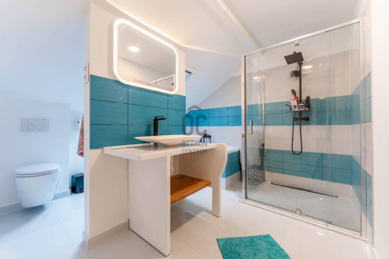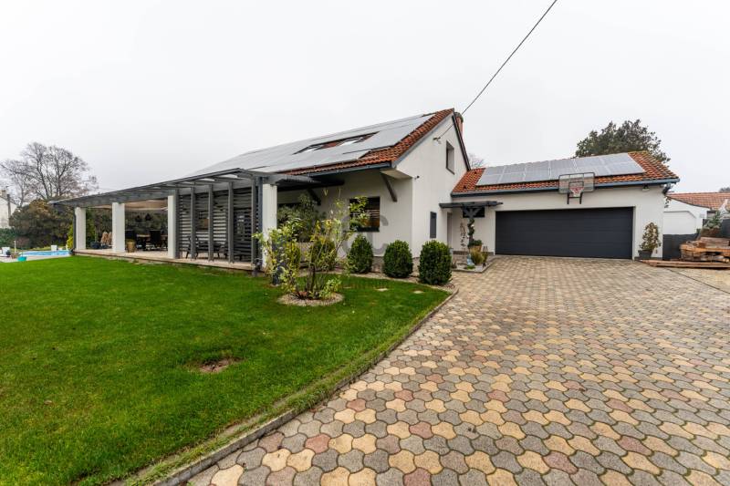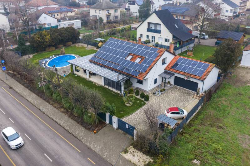 Eladásra kínálunk Székesfehérváron, Öreghegy könnyen megközelíthető részén, egy 260nm-es (bruttó 312nm) két szintes, nappali + öt szobás, három fürdőszobás, dupla garázzsal (36nm) rendelkező, exkluzív családi házat.A ház 1311nm telekre épült, egy 50nm-es boros pince is található a ház alatt.Az ingatlan 2005-ben épült, 2020-ban teljeskörű felújításon esett át, mind műszaki, mind esztétikai szempontból.A korszerű napelemes technikával felszerelt ház (66db 20 kW-os napelem), a magasabb hatékonyságra fókuszál.A fűtésről padlófűtés, a melegvíz ellátásról, három Ariston intelligens bojler gondoskodik.Az ingatlan paraméterei:- 3 x 63 A + ipari áram- kamerarendszer- BWT intelligens vízlágyító készülék- öntözőrendszer, tíz körös, programozható, 480 méter csepegtető rendszerrel- fúrt kút- kerti tároló- 6 x 10 méteres medence, sóbontásos, automata porszívóval felszerelt, fóliával fedett- elektromos garázskapu, bejárati kapu- grandiózus terasz- három rétegű alumínium nyílászárókElhelyezkedése családi házas övezet, főúthoz, autópályához, bevásárlási lehetőséghez közel.A Spar és Lidl egy ugrásra, posta, orvosi rendelő 8 -10 perc sétával elérhető.Tömegközlekedéssel is könnyedén elérhető a ház, a 23,24,25,31,-es buszokkal. Egyedi lehetőség, hívjon bizalommal, amennyiben hirdetésünk elnyerte tetszését, várom megtisztelő érdeklődését!Az Otthon Centrumnál bankfüggetlen tanácsadó kollégánk, díjmentes bank semleges hitelügyintézéssel áll rendelkezésére, segítségére lesz az önnek legmegfelelőbb konstrukció kiválasztásában.
