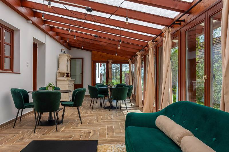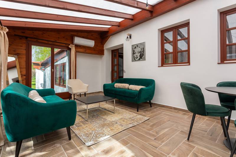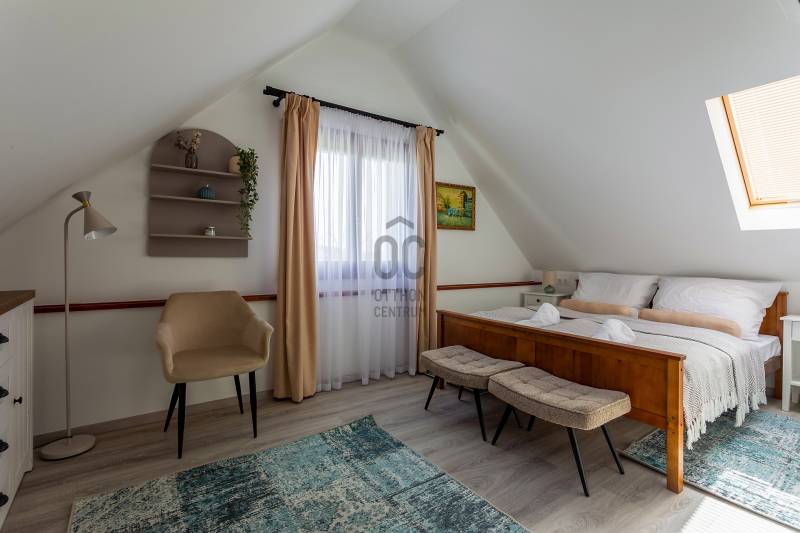 A Balaton északi partján, a Káli-medence egyik legbájosabb településén kínálunk megvételre egy teljes körűen felújított, két szinten elhelyezkedő, szálláshely üzemeltetésére kiválóan alkalmas ingatlant.Az ingatlan lakóház besorolású, de kialakítása és felszereltsége révén már jelenleg is vendégházként üzemel, így az új tulajdonos akár azonnal folytathatja a működtetését.Telek terület: 1460 m²Alapterület: 221 m²Szobák száma: 7Fürdőszobák száma: 5JELLEMZŐK ÉS ELRENDEZÉS – vendégfogadásra optimalizálvaFöldszint: Első lakóegység: gépesített, tágas konyha-étkező, hálószoba, fürdőszoba, külön mosókonyha/tároló Fedett télikert: világos közösségi tér nagy üvegfelületekkel – ideális reggeliztetéshez vagy vendégrendezvényekhez További helyiségek: közös használatú konyha, szoba, fürdőszoba, gépészeti helyiség, közlekedőEmelet: 3 külön bejáratú vendégszoba, mindegyik saját fürdőszobával és WC-vel Tágas közlekedő/közösségi térModern felszereltség, alacsony üzemeltetési költség Elektromos padlófűtés + hőtárolós melegvíz rendszer Hűtő-fűtő klíma Kályha az első lakóegységben Napelemrendszer 3×32 A áramerősség 12 cm külső hőszigetelés Hőszigetelt fa nyílászárók Cserépfedésű, szigetelt tetőVendégcsalogató külső környezet: Elektromos kapu, térkövezett előudvar Gondozott, parkosított hátsó kert: kerti tó, gyümölcsfák, füves pihenőrész Szauna és kültéri dézsafürdő a vendégek kényelméért Minőségi bútorok, napernyők, nyugágyak, hinta és kerti garnitúrák az udvaronKiváló befektetés – Azonnal működtethető turisztikai egységEz az ingatlan nem csupán egy lehetséges otthon – egy kész vendéglátóhely, ahol az új tulajdonos egy jövedelmező családi vállalkozást vihet tovább. A Balaton és a Káli-medence folyamatos turisztikai vonzereje garantálja a szezonon túli kihasználtságot is.Vegye fel velünk a kapcsolatot még ma – ragadja meg ezt az egyedülálló lehetőséget!Ideális választás magánszemélyeknek, befektetőknek, de akár cégek számára is üdülőként vagy prémium vendégházként.
