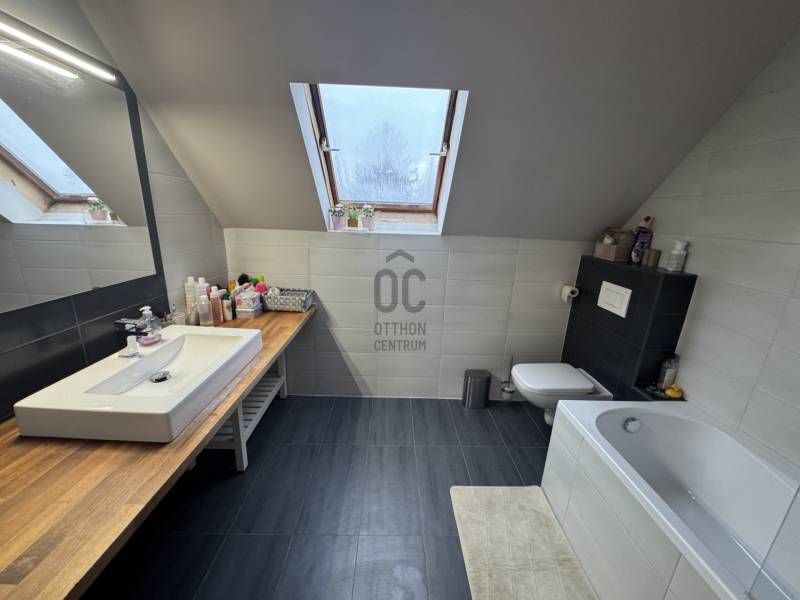 Százhalombatta egyik legkedveltebb, csendes és zöldövezeti részén, Dunafüreden kínáljuk megvételre ezt a két szintes, pincével és garázzsal rendelkező családi házat.Az ingatlan 719 m²-es telken helyezkedik el, a lakóház hasznos alapterülete 140 m², mely nappali + 3 hálószobás elrendezésű, 2 fürdőszobával, összkomfortos kivitelben. A házhoz nagy méretű erkély is tartozik. A telken belül és kívül is több autó parkolása megoldható.A fűtést gázcirkó biztosítja, emellett mindkét szinten padlófűtés található, valamint összesen 5 darab klímaberendezés gondoskodik a komfortérzetről. Az ingatlan összközműves.A ház 1993-ban épült, déli–délnyugati tájolású, a belmagasság 2,7 méter. A nyílászárók fából készültek. Az épület jelenleg nem szigetelt, a tetőt Bramac tetőcserép fedi. A homlokzat állapota átlagos, a belső terek állapota átlagos és jó közötti.Az ingatlan tehermentes, két tulajdonossal rendelkezik. A beépített bútorok és gépek a vételár részét képezik, a további berendezési tárgyak megegyezés tárgyát képezik.A környék rendkívül élhető: csendes, zöld, a Duna-part pár perc távolságra található, valamint egy közkedvelt halászcsárda/étterem is a közelben van. Óvoda közvetlen közelben, a buszmegálló szintén pár percre, ahonnan két buszjárat közlekedik közvetlenül Százhalombatta vasútállomására, illetve Budapestre.A városközpont, iskolák, valamint a Tesco áruház is könnyen és gyorsan elérhető, az iskolák kb. 6–7 perc alatt busszal megközelíthetők.Az ingatlan kiváló választás családok számára, akik nyugodt környezetben, mégis jó közlekedéssel keresnek otthont.Várom megtisztelő megkeresését!