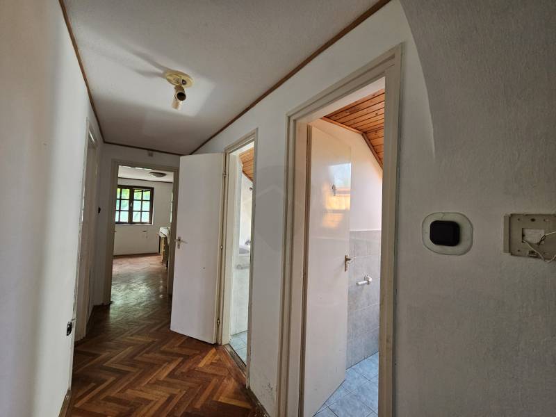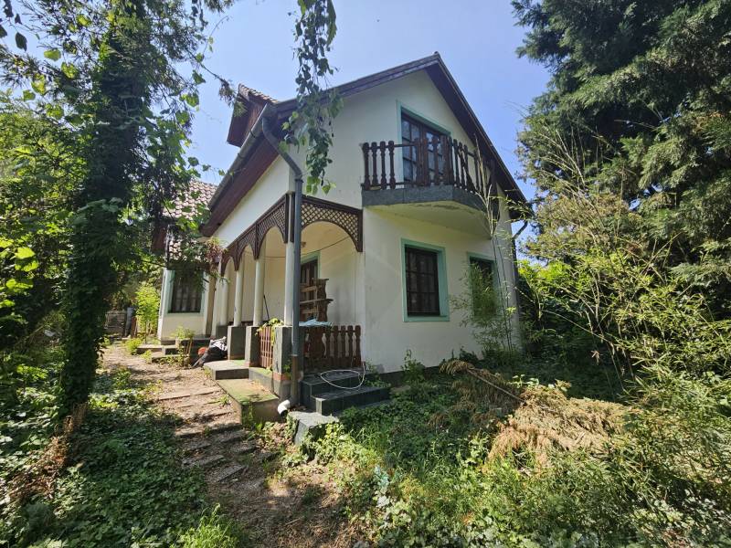Szentendrén Izbég városrészben egy hangulatos vadregényes 540 nm-es telken KÉT KÜLÖN ÁLLÓ CSALÁDI HÁZ ELADÓ! A nagyobbik ház 160 nm-es a kisebbik pedig 52 nm-es.A telek nagy előnye, hogy két külön utcáról is van bejárás, így két generáció kényelmes együttélése is megoldható. De a családi vállalkozás is könnyen működtethető egy telken belül, mégis jól szeparáltan.A ház TÉGLA építésű nagyobbik HÁZ ugyan felújítandó, de 1998-as építésének köszönhetően abszolút alkalmazkodik a mai kor igényeinek a nagyobb terasz kapcsolatos közösségi terekkel és a külön lakrészekkel az emeleten, valamint az emeletenkénti fürdőszobákkal és a tárolást elősegítő gardróbokkal. A tetőcserepek kiváló állapotban vannak. A felső szinten 2 erkély, az alsó szinten 2 terasz található. Az 5 szoba kényelmes méretű és mindegyik külön bejáratos. A telek tájolása remek, délnyugati fekvésű, így egész nap világos. A telken minden közmű megtalálható. Így a fenntartási költségek jól szabályozhatók. A kertben kis tároló és az önálló kisebb ház található, ez a ház 2 szobás és gázkonvektoros fűtésű.Az udvarba gépkocsival be lehet állni.Közlekedése kiváló, közelben buszmegálló, Budapest irányába. Általános iskola a közelben. Kirándulóhelyek a környéken: Dömör-kapu, Lajos-forrás, Kő-hegy, Vasas-szakadék, Sztaravoda-forrás, Skanzen, Sikárosi-rét.Ha egy természetközeli, kényelmes, saját ízlés szerint felújítandó álomházat keres, mely könnyen fenntartható, és szeretné élvezni a kis ház adta lehetőségeket akkor ne habozzon, hívjon és nézzük meg együtt!