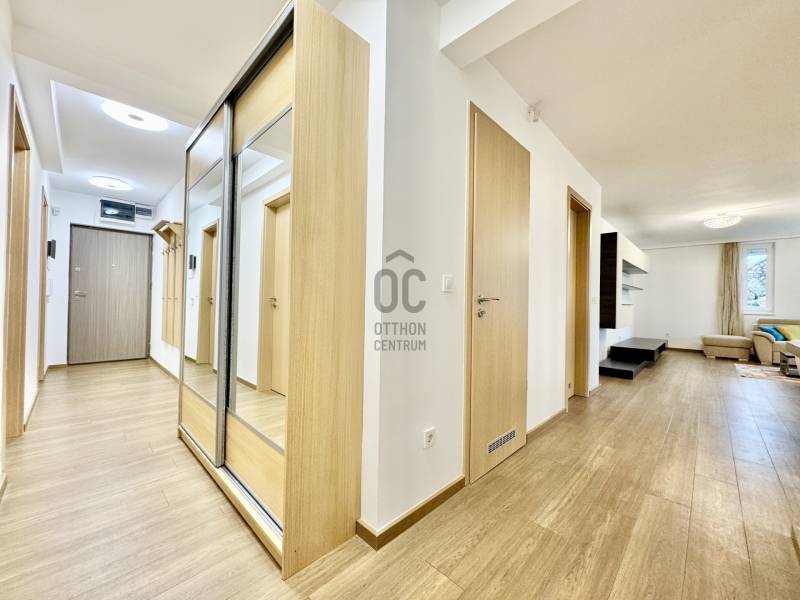 Hangulatos lakóparki otthon elérhető kertkapcsolattal, a 11. kerület Örsöd városrészében!Eladásra kínálok egy azonnal költözhető, újszerű, igényesen kialakított 4 szobás lakást a Budaörs határán fekvő lankás dombhát kertvárosi lakóövezetében, egy felkapott és biztonságos környéken. Az ingatlan nyugodt, családias környezetben helyezkedik el, egy fenntartható, innovatív lakóparkban. A társasház az exkluzív otthonokkal övezett Spanyolrét és Madárhegy közvetlen szomszédságában helyezkedik el. A lakás frissen lett festett, és kitűnő elosztással rendelkezik.A tulajdonosok az ingatlan berendezése során a minőséget és a kényelmet helyezték előtérbe. A lakás minden helyisége a korszerű, mai igényeknek megfelelő otthont, emellett a meghitt és letisztult hangulatot sugározza. Az ingatlanba belépve szembe tűnik a békés, harmonikus színvilág és a napfényes belső terek. A lakás gazdaságos hőellátását zöld megoldás biztosítja, amely környezetbarát és korszerű technológia. Az energiatakarékosság jegyében a hűtés-fűtés és a meleg víz előállítása levegő hőszivattyúval történik, amely garancia a magyarországi klimatikus viszonyok mellett az optimális működésre, hiszen a rendszer automatikusan választja ki a leghatékonyabb működési beállítást. A lakások hűtés-fűtés rendszerei a lakószobákban és a konyhában a mennyezetbe kerültek, míg a fürdőszobába és a WC-be padlófűtés lett kialakítva. A hőszabályozást termosztáton keresztül külön is, helyiségenként, illetve egyben is elvégezhetjük.A lakáshoz kötelezően megvásárlandó az épület alagsorában található 2 db teremgarázshely, valamint 2 db zárható tároló. Ezek ára összesen 12.000.000 Ft.A lakás zöld növényzettel körülölelt, osztatlan közös tulajdonú kerttel rendelkezik, míg terasza saját. (Szokásjog alapján ezt a lakást közvetlen körülvevő teraszt és zöld területet más nem használja.)Kialakítás:- Nappali-konyha, hálószoba 1, hálószoba 2, hálószoba 3, fürdőszoba, toalett, háztatási helyiság, tároló, közlekedő, teraszÁllapot:A gondos odafigyelésnek és a kiváló minőségű belsőépítészeti megoldásoknak és prémium bútoroknak köszönhetően az ingatlan tökéletes, költségmentes állapotban van.A 2018-ben épült lakópark révén, a teljes víz és villanyvezeték és fűtéshálózat új.Költségek:- víz, villany, hőmennyiség mérés: fogyasztás alapján, saját mérőórával (utóbbit a közös képviselőnek bejelentve)- közös költség: 55.000.-Ft (ez tartalmazza, többek között: teremgarázs, tároló, biztosítás, kertész, takarítás, szemétszállítás, felújítási alap költségeit)A lakásról:- D és K-i tájolás (nappali)- 2 szintes ház földszintjén- tágas nappali sok ablakkal és kertre néző kilátással, teraszra vezető ajtóval, beépített nappali-bútorfallal- gyönyörű ablakos és gépesített amerikai-konyha: prémium kivitelezésű Corian konyhabútorral, beépített hűtővel és mosogatógéppel, főzőlappal és elektromos sütővel, kivezetett szagelszívó, egyedi tervezésű étkező asztal, spotlámpák- nagy méretű műanyag nyílászárók aereco-val, minden helységben szúnyoghálóval és elektromos aluredőnnyel felszerelve, amely távirányítóval szabályozható- 3 rétegű hő-zajvédő üvegezésű ablakok és teraszajtók- a mennyezeti fényforrások LED-esek és dimmelhetőek távirányító segítségével- biztonsági bejárati ajtó, minőségi belső nyílászárók- 3 db normál méretű külön nyíló szoba- ép, igényes letisztult víz és kopásálló vinyl padló valamint járólap burkolatok- tároló helyiség a gépészettel, valamint háztartási helyiség plusz fagyasztóval és tároló-rendszerrel, mosógép kiállással- folyosón beépített szekrény- külön helységben wc, kézmosóval- tágas káddal, zuhanyzóval és wc-vel rendelkező fürdőszoba ventilátorral, és törölközőszárítóval- 3 helységből kijárat a kertbe- kerítéssel és kapuval körbevett, ápolt, ültetett növényekkel rendelkező kert, 5,6 m2-es fedett terasszal- füstjelző és riasztó rendszer kiépítve- a lakásban látható bútorok és egyéb berendezések megegyezés tárgyát képzikA házról:- teljesen körbeszigetelt ház- igényes, rendszeresen takarított, zárt lépcsőház- kultúrált, értelmiségi lakóközösség, aktív online-házcsoport is- 8-9 lakásos társasház (összesen 5 épület és 51 lakás)- kaputelefon- saját, zárható tároló - 2db- mélygarázs - 2 hely- ingyenes parkolás a ház előtt- zöld növényzettel szomszédos és patakkal szomszédos lokáció- gondosan ápolt parkosított, gazdag növénnyekkel övezett zárt kert, amelyet a kertész valamint automata öntözőrendszer tart karban- a lakópark saját játszótérrel rendelkezik - a lakóparkon belül egy zárt, felszíni kocsibeálló is van amelyet a közös képviselővel egyeztetve lehet igényelni Környezet:A lakópark környezete infrastrukturálisan kitűnően ellátott, közvetlen közelben iskolák, bankok bevásárlóközpont, rendelő, gyógyszertárak találhatóak, a belvárosba való gyors bejutást pedig számos buszjárat és a M4 Metró biztosítja. A környék csendes, családbarát és rendkívül jól ellátott: óvoda és bölcsőde gyalogosan is elérhető, a közelben pedig számos bevásárlási lehetőség található (SPAR, CBA, Lidl, Aldi, Penny). Az M1–M7 autópálya, valamint a város központja is gyorsan megközelíthető, ha valaki szereti a Balatont ez kimondottan előnyös. Rendezett tulajdonjog, az ingatlan per-, teher- és igénymentes.Családok számára tökéletes otthon, de befektetés szempontjából is értékálló, kiemelt térségben helyezkedik el, gyorsan kiadható hosszútávra is akár.Az ingatlan megvásárlásához jel