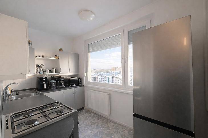 Az Újpesti Bíróság közelében, kiváló közlekedés mellett, liftes társasház VIII. emeletén, eladásra kínálunk, egy 53 nm-es, 2 szoba+hallos elosztású, jó állapotú, kétfekvéses, erkélyes panellakást. A társasház tűzfalait szigetelték, a bejárati kapuk és a postaládák cseréje megtörtént. Az ingatlan 1/1-es tulajdonban van, per-teher és igénymentes. Átadási ideje: 30-90 nap! Közös költsége: 19.557.- Ft/hó. A lakásba több ponton záródó, biztonsági bejárati ajtót, modern beltéri ajtókat, valamint redőnnyel és szúnyoghálóval felszerelt, műanyag keretes, thermo üveges nyílászárókat építettek be. A szobákban laminált padlót helyeztek le, a többi helyiséget járólappal burkolták. A fűtőtesteket korszerűsítése is megtörtént, ezeket egyedi hőmennyiségmérővel látták el. Az elszámolás fogyasztás alapján is történhet, a jelenlegi átalánydíj 7.473.- Ft. Konyhája nagy ablakos, világos, a konyhabútor és a két gardróbszekrény a vételár részét képezi. Pár perc sétával, Pepco, Rossmann, Spar, Penny, gyógyszertár, háziorvosi rendelők, iskolák, óvodák, posta, éttermek, pékség, illetve egyéb szolgáltatók és szolgáltatások mind megtalálhatók. A közelben megtalálható a 20E, 30-as, 120-as, 121-es, 204-es, 196-os, 104-es, 25-ös, 170-es busz, valamint a 12-es, 14-es villamos megállója is. Újpest-központ és az M3-as metróállomás gyalogosan kb. 4 perc alatt megközelíthető. A belváros tömegközlekedéssel és autóval egyaránt rövid időn belül elérhető. A hirdetésben szereplő adatok tájékoztató jellegűek! Egyes ingatlanjaink esetében csere és ingatlanbeszámítás is lehetséges. Továbbá ügyfeleink részére keresünk eladó ingatlant, tulajdonrészt, vagy haszonélvezeti joggal terhelt ingatlant Budapesten és az agglomerációban. A részletekről kérjük érdeklődjön telefonon.Bankfüggetlen hiteltanácsadóink az ország összes pénzintézete közül gyorsan és gördülékenyen találják meg az Önnek legmegfelelőbb konstrukciót, egyedi, személyre szabott kedvezményekkel.A KÖZVETÍTÉS VEVŐINK RÉSZÉRE DÍJMENTES!