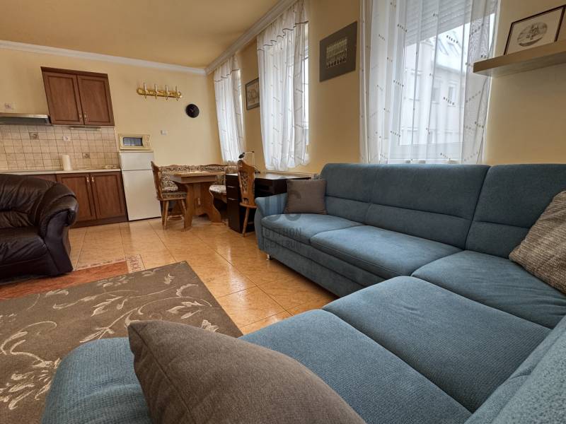 A belváros szívében, egy percre a Sétáló utcától, első emeleti lakás kiadó!-Tágas, világos, amerikai konyha-nappali-étkező egyben, külön hálószoba, fürdőszoba, mellékhelyiség, kamra, tágas előszoba.-A hatalmas teraszra egyaránt a nappaliból és hálószobából is kijuthatunk, mely a belső udvarra néz.-Redőnnyel felszerelt műanyag ablakok, mért távhő, klíma.-Bútorozott, műszaki kis- és nagy gépekkel felszerelt (mosógép, szárítógép, elektromos főzőlap,sütő, szagelszívó, hűtőszekrény, mikró, kávéfőző ).-A közös költség 10.100ft /hó-A belső udvarban parkolóhely biztosított,további 15.000 Ft/hó áron.Kizárólag megbízható, leinformálható, nem dohányzó bérlőnek kiadó!Bérleti díja két havi kaució, egy havi bérleti díj, illetve a közvetítési díj egy havi bérleti díj 50 %-a.