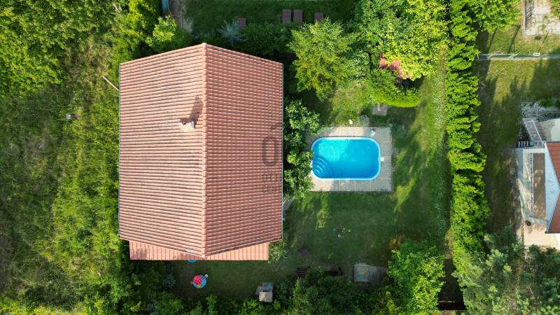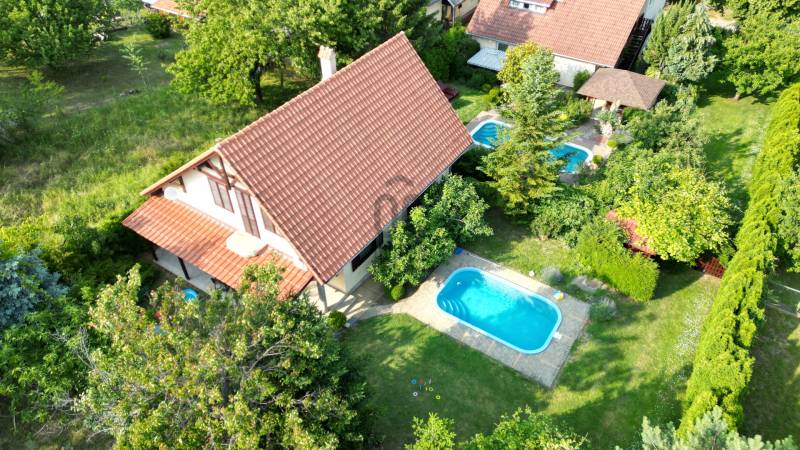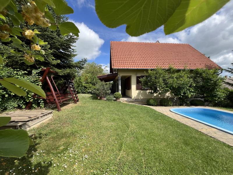 A Balatontól mindössze 1500 méterre, Balatonföldvár nyugodt, ritkán beépített részén kínálunk megvételre egy valóban különleges adottságú, gondosan karbantartott, medencés családi házat. Az ingatlan jelenleg is jól működő vendégházként üzemel, ugyanakkor tökéletes választás lehet családi nyaralónak vagy akár állandó otthonnak is.Az ingatlan főbb paraméterei:Telek: 469 m², 23 méter széles utcafronttal, igényesen kialakított, gondozott kerttelFöldszint: 74 m² lakótér + 28 m² fedett terasz3 hálószobafürdőszoba WC-velvilágos, napfényes amerikai konyhás nappaliTetőtér: 64 m² (ca. 80%-os készültségi szint)3 hálószobanappalifürdőszoba, külön WC, közlekedőTájolás: délnyugati – egész nap világos, napfényes terekMűszaki és kényelmi felszereltség:Kerti medence, sütögető és külön szerszámtárolóKétrétegű fa nyílászárók, szúnyoghálóval felszerelveFűtés gázcirkó kazánnalIvóvíz közműről, valamint saját, bevizsgált fúrt kút ivóvíz-minőségű vízzel – ideális locsoláshoz és a medence üzemeltetéséhezElektromos hálózat földkábelen bevezetveMiért jó döntés ez az ingatlan? A ház ideális választás mindazok számára, akik csendes, természetközeli környezetben szeretnének pihenni vagy élni, mégis elérhető távolságban maradnának a Balatontól. A már bejáratott vendégházi működésnek köszönhetően az ingatlan akár azonnali bevételt is biztosíthat új tulajdonosának.A tágas, fedett terasz kiváló helyszíne baráti és családi összejöveteleknek, a gondozott kert és a medence pedig valódi nyaralóhangulatot teremt a mindennapokban.Ne szalassza el a lehetőséget!Tekintse meg személyesen, és tapasztalja meg, milyen érzés hazatérni ebbe a barátságos, sokoldalúan hasznosítható balatoni otthonba.