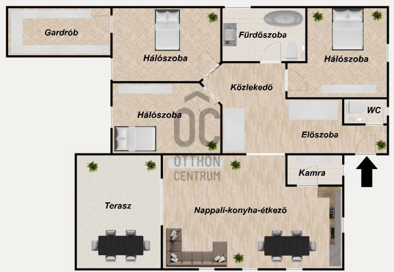 Pátka egyik csendes, kedvelt, újépítésű utcájának utolsó beépített telkén kínálunk megvételre egy modern, kulcsrakész, társasházi tégla lakást, amely külön bejárattal és saját kerttel rendelkezik.Az ingatlan nettó 91,75 m² hasznos alapterületű, melyhez egy 17,85 m²-es terasz és egy 300 m²-es saját kert tartozik – ideális választás azok számára, akik a nyugodt, zöld környezetet ötvöznék a korszerű műszaki megoldásokkal.Praktikus elosztás:-3 külön nyíló szoba-Egyik szobából nyílik egy gardróbszoba-Amerikai konyhás nappali–étkező-Fürdőszoba WC-vel-Külön WC-Kamra-Előszoba, közlekedő-Tágas terasz, közvetlen kerttelKorszerű, energiatakarékos műszaki tartalom:-Hőszivattyús fűtési rendszer-30 cm-es teherhordó tégla falazat, 10cm-es tégla válaszfallal.-15 cm EPS homlokzati szigetelés + 10 cm XPS lábazat-3 rétegű, 6 légkamrás műanyag nyílászárók (U=0,96 W/m²K), opciónálisan árnyékolástechnikával választható.-30 cm mennyezeti hő- és hangszigetelés-Választható burkolatok és beltéri ajtók-Teljes körű villany-, víz- és csatornakiállások, szerelvényezéssel.-Kulcsrakész kivitel, igény szerint alakítható belsőkkel Környék:Pátka Székesfehérvártól mindössze 10 km-re, „táblától tábláig” található, kiváló megközelíthetőséggel. A reggeli és a délutáni csúcsforgalomban is akadálymentes a közlekedés, így ideális választás mindazok számára, akik a nyugodt, vidéki életérzést szeretnék ötvözni a városi infrastruktúra gyors elérhetőségével. A település barátságos, családias hangulatú, a környék csendes és rendezett, különösen kedvelt kisgyermekes családok és természetkedvelők körében. A közelben kirándulóhelyek, tó és kiterjedt zöldterületek biztosítják az aktív kikapcsolódás lehetőségét.Parkolás:A lakáshoz kötelezően megvásárolandó parkoló tartozik, melynek ára:1.499.000 Ft + ÁFAKinek ideális?Családoknak, akik új építésű otthont keresnekFiatal pároknak, első közös lakáskéntBefektetőknek, értékálló, jól kiadható ingatlankéntTársasházi lakásnak lesz minősítve, viszont teljesen külön bejáratú az ingatlan.✨ Ha egy modern, energiatakarékos, új otthonra vágyik nyugodt környezetben, ez az ingatlan kiváló választás!Amennyiben felkeltette érdeklődését az ingatlan, további információért illetve megtekintéssel kapcsolatban várom hívását.