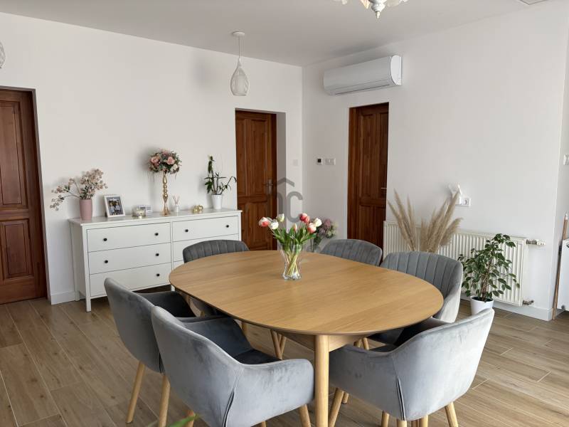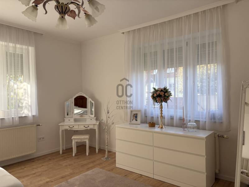 Ez a XVI. kerületi családi ház nem felújítási projekt, hanem egy kész, komfortos élettér, amelyet 2023-ban teljeskörűen felújítottak, így az új tulajdonosnak már csak költöznie kell.Az elosztás tudatos és jól működik a mindennapokban. két külön nyíló hálószoba és egy tágas, világos nappali alkotja az otthon központját, ahol minden helyiségnek megvan a maga funkciója – felesleges kompromisszumok nélkül.________________________________________Amit az első pillanattól érezni lehet•2023-ban teljeskörű felújításon átesett ingatlan•Azonnal költözhető állapot•Nappali-központú, élhető elosztás•Két szeparált hálószoba•Garázs és pince a kényelmes parkoláshoz és tároláshoz•Terasz, amely a kertre néz, nem az utcára – így a pihenés valóban csendes•Gondozott kert, intim használattal•Kiszámítható, jól karbantartott műszaki állapotA ház kialakítása azok számára ideális, akik nem szeretnének átalakításokkal, felújítással, szervezéssel foglalkozni, hanem egy átgondolt, jól működő otthont keresnek.________________________________________Külső–belső egyensúlyBár a ház könnyen megközelíthető, jó közlekedésű helyen található, a kert és a terasz belső irányba tájolt, így a mindennapi használat során nyugodt, intim környezetet biztosít.Ez a kettősség – jó elérés és csendes pihenőtér – ritka és valódi érték.________________________________________ÖsszegzésEz az ingatlan azoknak szól, akik értékelik a kész állapotot, a kényelmet és az átgondolt részleteket, és egy olyan otthont keresnek, ahol a mindennapok már az első naptól gördülékenyen működnek.Megtekintés előzetes időpont-egyeztetés után.Ez az ingatlan a \"Felező csomag\" megbízási portfólióhoz tartozik. Részletek az Otthon Centrum weboldalán.