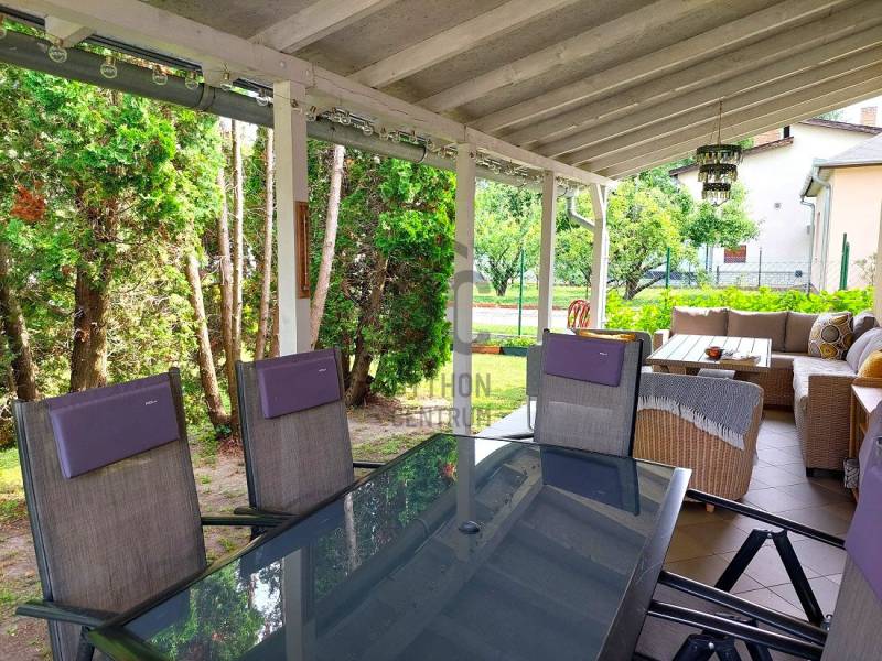 A strandtól csupán 400 méterre kínálunk eladásra egy nappali + 3 hálószobás ingatlant.Az ingatlan lakó besorolású, így alkalmas az Otthon Start hitelre.A ház a 70-es évek végén, téglából épült. Pár éve külső-belső felújításon esett át, új nyílászárókat, kívülről pedig szigetelést is kapott.Energetikai besorolása A+. Fűtése, hűtése hőszivattyús klímával és H tarifával megoldott. A tetőn napelemek kerültek felhelyezésre.A nappaliból egy hatalmas 35m2-es, árnyas teraszra léphetünk ki, amely növényekkel határolva ad intimitást az utca felől.Az épület hátsó részén gyönyörű, három oldalról, üveggel körülvett étkező található, amely alkalmas nagyobb vendégség fogadására is.A 720m2-es kert szépen gondozott, dísznövényekkel tarkított. Locsolása fúrt kútból megoldott.A hátsó részen gyümölcsfákkal beültetett. Almafák, szilva, barack, cseresznye, mellettük fűszernövények, paradicsom.A kertben még egy különálló 21m2-es épület is található, amely egy teljes értékű lakórésznek felel meg, konyhával, fürdőszobával felszerelt.A kisházhoz egy tároló és egy fedett beálló is csatlakozik.Gyalogosan vagy biciklivel, Balatonföldvár központja, a Yacht kikötő, a csodás Kvassay sétány, éttermek, bevásárlási lehetőség is percek alatt elérhető.Felkeltettem érdeklődését?Hívjon, akár hétvégén is!