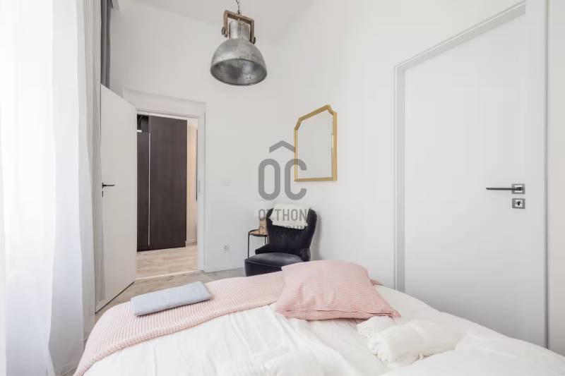 Kiadásra kínálok a VI. ker belső részének nyugodt utcájában egy nagyon szép és igen impozáns teljesen felújított belső és külső homlokzatú társasházban található 52 nm -es, remek alaprajzú N+ 2 hálós igényesen műszakilag és esztétikailag is teljesen felújított ingatlant, teljes bútorzattal együtt.Lássuk a részleteket:A VI. ker. belső részén, egyenlő távra az Andrássy úttól, az Oktogontól vagy a nyüzsgő VI. és VII. kerület határát is jelentő Király utcától egy kis nyugodt egyirányú utcában található az ingatlan.A klasszikus polgári épület külső homlokzata teljesen felújított - tükrözi a régi értékeket. Az épületbe lépve rendezettség fogad. A belső homlokzat és a kapuszín szintén felújított. A lakás a társasház II. emeletén található ide vagy lifttel vagy a szép szintén impozáns lépcsőházban jutunk fel.Az ingatlan teljes műszaki felújításon esett át ( ez magában foglalt mindent ) - a fotók magukért beszélnek!A lakásban egy kellemes méretű amerikai konyhás nappali kapott helyet, illetve egy kisebb és egy nagyobb hálószoba. Az egyik hálóhoz az alaprajzon is látható módon egy kis aranyos gardrób is tartozik. A beérkezésnél elég a tér, és itt is világos a lakás. Van elég hely lepakolni, megérkezni. Az amerikai konyhás nappali utcára néz, de mivel az utca csak egyirányú nagyon csendes. A képeken is látható, hogy gépesített konyha ( mikró, sütő, elszívó, főzőlap, mosogatógép stb. ) . A kellemes méretű nappaliban kis étkező, pihenő sarok és nappali rész lett kialakítva. Innen nyílik a nagy háló, melyben nagy méretű világítással is felszerelt gardrób szekrény kapott helyet. A fürdő is minden igényt kielégít - végre nem kell dönteni, hogy kád vagy zuhany, ugyanis mindkettő van! Kézmosó, mosógép és törölközőszárító is kellemesen elfér itt. A WC külön van a fürdőtől.Az ingatlan fenntartása nagyon kedvező.Az ingatlant egyedi, gáz cirkó kazán fűti, a hidegről klíma gondoskodik, gázóra, vízóra és villanyóra is van. A kktg. 21.415 Ft.A lakáshoz tartozik a pincében egy önálló tároló, mely 6 m2.Várom hívását, rugalmasan megtekinthető nagyon szép ingatlan. Keressen nyugodtan!