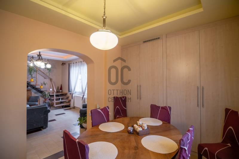 22. kerületben, Budafokon a Háros utca - Gádor utca környékén, zöldövezetben, csendes kertvárosi mellékutcában eladó egy 180 m2-es nettó lakótérrel rendelkező, 2 generációs, összesen 7 lakószobás ház, teraszokkal, pincével, fedett felszíni autóbeállókkal, 544 m2-es önálló telken. A ház 2 önálló lakással rendelkezik (60m2 és 120 m2), de a lakások akár össze is nyithatóak. Mindkét lakásnak önálló bejárata van, a kertrészek is teljesen szeparálhatóak. A kisebb lakás (2 szobás) teljesen felújított, korszerűsített, modern hatású. A nagyobb lakás (nappali + 5 hálószobás) is folyamatosan karbantartott, a burkolatok jó állapotúak, a vizes helyiségekben újszerűek – ez a lakás egyedi igény szerinti kisebb esztétikai felújítás után azonnal költözhető. A nyílászárók korszerű műanyag ablakok.A lakásokban a villany- és a víz fogyasztás külön mérhető, a fűtésköltség a két lakóegység miatt dupla rezsicsökkentéssel fizethető. A fűtés fali gázkazánnal történik. Nappali és éjszakai áram is rendelkezésre áll. A pince kb. 20 m2-es. A lakások kényelmes méretű teraszokkal rendelkeznek, amelyek tavasztól őszig remekül használhatóak. A ház mellett 2 autó számára fedett kocsibeálló áll, de az utcán is kényelmesen meg lehet állni autóval. Az udvarra elektromos működtetésű nagykapun és személybejárón is bejuthatunk.A ház:- 2 szintes, 2 generációs nyeregtetős épület- homlokzati hőszigetelés- lakásonként mérhető víz- és áram fogyasztás - korszerű műanyag ablakok- biztonsági bejárati ajtók- fedett autóbeállók, elektromos kapu- pinceElrendezés:1. Lakás: - földszintes- 2 szoba, terasz, kertkapcsolat- konyha- fürdőszoba, külön wc- előszoba.2. lakás:- 2 szintes- nappali és 5 hálószoba, terasz, kertkapcsolat- étkező,- konyha- 2 fürdőszoba, külön wc- közlekedők- lépcsőtér.A kert parkosított; kisgyerekes családnak is kitűnő választás: a közelben bölcsőde, óvoda, iskola; a játszótér sétatávolságra van. A tömegközlekedés kiváló, autóbusz megállók közel találhatóak. A környék kertvárosi hangulatot tükröz, jó választás, ha Ön családjával Budafokon szeretne élni.A megtekintés miatt keressen bizalommal. Kizárólagos megbízás, vadonatúj ajánlat!