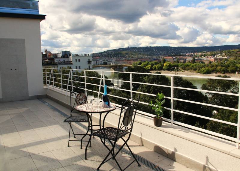 Penthouse a Szent István park felett – Margitsziget-panoráma, 50 m²-es tetőterasz, luxus Újlipótváros szívébenA 110 m²-es, belsőépítész által megálmodott otthon a kifinomult dizájn és a mindennapi kényelem kiegyensúlyozott elegyét kínálja. A lakás szíve az üvegfalú télikert-étkező, ahol télen-nyáron természetes fényben élvezheti a Dunára és a budai hegyekre nyíló kilátást.A tágas belső terek mellett hatalmas privát tetőterasz várja kültéri zuhannyal – ideális hely a város feletti pihenéshez. A lakásban 2 hálószoba, 2 fürdőszoba és egy nagy méretű nappali található, és válogatott prémium bútorokkal berendezett és gépesített. (A bútorok egy része a fotókon még nem látható.)– 110m² lakótér klimatizált üvegfalú télikert-étkezővel, 50m²-es tetőterasszal– Elsőrangú lokáció Újlipótvárosban a Pozsonyi út és a Szent István park mellett – Villamos: 4/6, trolibusz:75, 76, nem messze M3-as Metró, Nyugati Pu.-tol.– Örök panoráma a Szent István Parkra, a Margitszigetre és a budai hegyekre– Lifttel megközelíthető csendes legfelső szint - kerekesszékes használatra alkalmas– Prémium gépesítés, okostévé, okostelefonról vezérelhető klimatizálás és világítás– Távfelügyeletbe kötött riasztó, korszerű nyitás- és füstérzékelés– Parkolás közeli garázsban (bérlet része)– Otthonmenedzsment-asszisztencia (pl. tetőterasz ápolása) a bérlet része – takarítás igény szerintEz az ingatlan több mint lakás – életforma azoknak, akiknek fontos a tetőterasz és a télikert nyújtotta hangulat és a dunai horizont zavartalan látványa.Bérleti feltételekSzerződéskötéskor 2 havi kaució és 1 havi bérleti díj fizetendő.Minimum bérleti idő: 2026 július 31-igNemdohányzó ingatlan; szabadon mozgó kisállat nem hozhatóKözjegyzői okiratba foglalt kiköltözési nyilatkozatFelhívjuk figyelmét, hogy a képgaléria a lakás bútorozás előtti és utáni, berendezett állapotát is bemutatja, így a felvételek között eltérések tapasztalhatóak.
