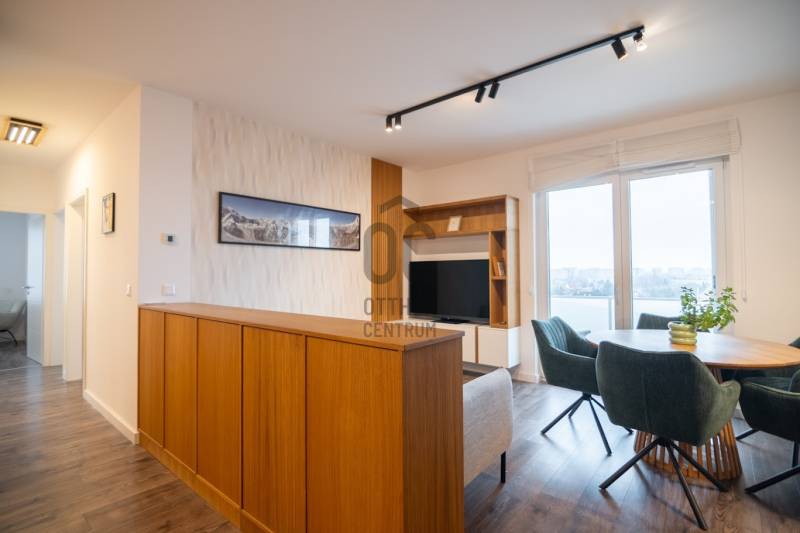Képzelje el, ahogy minden reggelét napfénnyel és panorámával indítja, egy olyan otthonban, ahol a modern kor minden kényelme és az időtlen elegancia kéz a kézben jár. Ez nem csupán egy lakás, hanem egy életstílus ígérete, egy otthon, amely készen áll az Ön és családja befogadására.Eladó egy újszerű, 2023-ban átadott, prémium minőségű ingatlan (TELJES BERENDEZÉS AZ ÁRBAN!) Budapest egyik legdinamikusabban fejlődő részén, a 11. kerületben, Kelenföld szívében.Főbb jellemzői: teljesen berendezve, elegancia, kényelem, panoráma, 2 db teremgarázs beálló.Miért ez az otthon a tökéletes választás?•Ahol a fény otthonra talál: A kitűnő délnyugati tájolásnak köszönhetően a lakás rendkívül világos. A napfény körbejárja a tereket, a két nagyméretű (8 és 7 nm-es) teraszról pedig zavartalan panorámában gyönyörködhet, kortyolgatva a reggeli kávéját.•A beköltözés élménye: Felejtse el a költözéssel és bútorozással járó stresszt! Az ingatlan teljes berendezéssel – a legapróbb kiegészítőktől a gépesítésig – eladó. Csak a bőröndjét kell hoznia, és máris kezdődhet az új élet!•Prémium minőség minden részletben: Az igényesség nem ismer kompromisszumot. A konyhában egyedileg legyártott, tölgyfa furnér konyhabútor és elegáns kerámia pult várja a kulináris élményeket.•Terek az egész családnak: A kiváló beosztású, nappali + 3 hálószobás elrendezés ideális életteret biztosít akár egy 4 tagú család számára is, ahol mindenkinek megvan a saját privát szférája. Duplakomfort, WC a fürdőszobában és külön helyIségben is.•Lokáció, ami összeköt: Kelenföld legjobb közlekedési adottságai vannak. Néhány perces sétára található a Bikás parki metróállomás (M4), a Kelenföld Vasútállomás, Autóbusz-állomás, és számos villamosjárat (1, 47, 49). Innen a város bármely pontja pillanatok alatt elérhető.Praktikus információk:*A 7. emeleti, akadálymentesen megközelíthető lakás egy rendezett, liftes társasházban található. *Helyiségenként külön szabályozható a hőmérséklet, mennyezeti fűtés/hűtés működik a ház hőszivattyú rendszeréről.*Távirányítóval vezérelhető elektromos redőnyök vannak minden külső nyílászárón.*A közös költség mindössze 30.000,- Ft/hó, amely tartalmazza a felújítási alapot, szemétszállítást, takarítást és a lift karbantartását. Minden közmű egyedi mérésű, a fogyasztás alapján fizetendő.*A ház teremgarázsában lehetőség van 2 db autóbeálló megvásárlására is, egyenként 11 M Ft áron, ahonnan lifttel közvetlenül a lakás szintjére érkezhet.Ne maradjon le erről a kivételes lehetőségről!Keressen minket bizalommal a megadott telefonszámon időpont-egyeztetés céljából, és tekintse meg személyesen leendő otthonát! Bankfüggetlen hiteltanácsadóink készséggel állnak rendelkezésére a legkedvezőbb finanszírozási lehetőségekkel kapcsolatban.