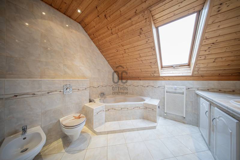 Eladó Budaörs egyik csendes mellékutcájában egy 280 m2-es, alacsony fenntartási költségű, élhető méretű kerttel rendelkező családi ház. Összesen hét szoba (5 teljes és 2 fél) és egy bő 670 m2-es, jó elosztású, ápolt kert biztosítja a többgyermekes családok kényelmét és magas életminőségét. Kér garázs és a kerti beálló akár három személygépkocsit és több motorkerékpárt is elnyel - a garázsokból közvetlenül bejuthatunk a házba anélkül, hogy esőben, fagyban kellene futkároznunk.A ház klimatizált, szinte az összes szobában saját klímakészülék gondoskodik a hűtésről/fűtésről. Egy gázkazán és egy kandalló biztosítja télen a meleget - az éves gázfogyasztás 100 000 forint körül alakul, így ez a lakóház bőven belefér a rezsicsökkentésbe is! A villanyszámla a telepített napelemeknek hála szinte minden hónapban nulla forint, ami a mai gazdasági helyzetben nem egy elenyésző részlet.A kétszintes ház a következő helyiségeket kínálja:Földszint:Előtér, nappali, konyha/étkező, kamra, fürdőszoba-WC, közlekedő, gépészet, vendégszoba/dolgozó, télikert és a garázsokA masszív, tömörfából felépített, kellemesen széles lépcső vezet az emeletre, aholtágas galéria/közlekedő, óriási (22,45 m2-es) szülői háló saját fürdőszoba/WC-vel, gardróbbal, szauna (nem megépített), kis dolgozószoba (4,82 m2), nagy fürdőszoba sarokkáddal, és két nagy gyerekszoba található. A két gyerekszobából közös erkély nyílik, ahonnan a kertre van kilátás.Pár műszaki részlet:- Külső falak 38 cm-es falazóelemekből- Belső teherhordó falak 25-ös falazóelemekből- Válaszfalak 10 cm-es téglából- Hörmann szekcionált garázskapuk- Viacolor „Classico” térkövezés- 11 cm-es szigetelés- Bramac alpesi plusz tetőhéjazat- Esővízgyűjtő rendszer, ami a kert locsolását biztosítja vízköltség nélkül- Fatüzelésű kandalló a nappaliban- Kiépített multimédiarendszer a nappaliban- Padlófűtés kiegészítő radiátorokkal- Tágas konyha prémium bútorzattal, beépített gépekkel- 4 kW teljesítményű napelemrendszer- RiasztrórendszerAz ingatlan jó állapotú, minimális ráköltést igényel. További információkért, kérem, hívjon!