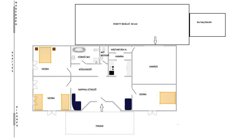 Gyömrő egyik legjobb helyén eladó egy földszintes, nappali plusz 3 szobás, dupla garázsos családi ház nagy telekkel.Az ingatlan: egy csaknem 1200 nm-es, összközműves, parkosított telek és a rajta álló 142 nm -es, cseréptetős ház.(és még sokminden más is)A telken álló, többségében örökzöld fákat és bokrokat, még az első, kertészmérnök tulajdonos ültette.. -fúrt kút is rendelkezésre áll!A főépületen kívül, van egy nettó 15 nm -es kis téglaház is amely jelenleg tárolóként működik, ezenkívül egy kerti grillsütőhely szaletli is.A falazat 40 cm-es ytong tégla plusz 5 cm dryvit szigetelés, a fűtés és a melegvíz előállítása Vailant gáz-cirkó kazánról történik, mindenhol van padlófűtés, sőt a szobákban még radiátor is, a nyílászárók közül az ablakok hőszigetelt üvegezésűek és a ház jellegéhez megfelelően fából készültek, a hűtéshez minden helyiségben légkondcionáló került felszerelésre.Az utcáról egy távirányítású kapun juthatunk be egy térburkolattal ellátott 50 nm-es!!, polkarbonát tetővel fedett részre, innen megközelíthető egy 10 nm-es pince és ugyancsak itt tudunk behajtani a kétállásos, fűtött, 26 nm-es garázsba is.(amelyből pedig bevásárlást követően praktikusan megközelíthető a ház kamrája, illetve konyhája)A lakás jó tájolású, kompakt, világos, energetikailag is jó, 3 nagy méretű szoba (16,18 és 19 nm)konyha, fürdőszoba-wc, külön wc és mosdó, közlekedő, kamra, háztartási helyiségekből áll.Az ingatlan az autópályák és Budapest közelségében, jó megközelíthető helyen fekszik, a városon belüli megközelíthetősége akár gyalogosan is kiváló.A környék kertvárosi, csendes és zöld, a kert hatalmas, az ingatlan biztonságát speciális risztók és érzékelők is fokozzák.Gyalogosan is gyorsan, 10-12 percen belül elérhető: Óvoda, Iskola, Gimnázium, Művelődési ház, Vasút állomás, Orvosi rendelő, Tófürdő, Városháza, Szabadság-Tér.