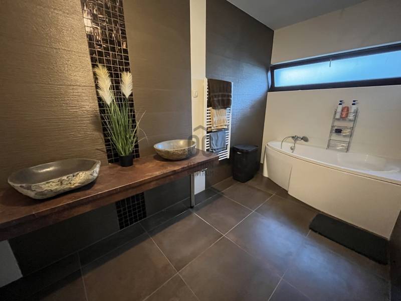 Eladásra kínálok a közkedvelt Nagybánya lakóparkban egy nettó 141 m²-es, önálló családi házat, melyhez 60 m²-es filagória, valamint garázs is tartozik. A tágas, jól átgondolt elrendezés és a kiemelkedő műszaki tartalom ideális választás lehet többgyerekes családok számára is.Elrendezés:- 4 különálló hálószoba - Szülői hálószobából nyíló privát fürdő- 33 m²-es nappali–étkező- Külön fürdőszoba és WC- 60 m²-es filagória – kiváló kinti étkezőként, pihenőként- 20 m²-es garázsTelek:- 720 m²-es, gondozott, tágas kertMűszaki jellemzők:- Cserép tetőhéjazat- 30 cm-es tégla falazat- 1 0 cm grafitos homlokzati hőszigetelés- Napelemrendszer (3Kw)- 3 rétegű, hőszigetelt műanyag nyílászárók dióbarna színben, redőnnyel és szúnyoghálóval- Kondenzációs gázkazán- Padlófűtés minden helyiségben- Klíma- Modern, energiatakarékos kialakítás- A vételár mellett a lakás bútorzata is megvásárolandó, melynek értéke további 5 millió forint.Ez az ingatlan különleges lehetőség azoknak, akik egy modern, kiválóan szigetelt, energiahatékony, élhető és nagy kerttel rendelkező otthont keresnek egy rendezett, családbarát lakóparkban. ✅ Ügyfeleinket teljes körűen segítjük a vásárlás és eladás teljes folyamatában megbízható hiteltanácsadói és ügyvédi háttérrel.Amennyiben felkeltette az érdeklődését, hívjon bizalommal – akár hétvégén is!