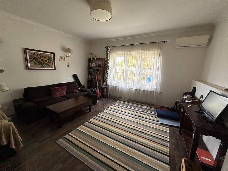 IV. kerületben, Újpest-kertváros részen, 347nm-es telken, bruttó 110nm-es, nettó: 94nm-es, előkertes, három fekvésű (É/D/Ny), duplakomfortos, 3 szobás, földszinti lakás eladó, 35nm-es pincével, saját 200nm-es medencés kerttel, autóbeállóval, garázzsal.Az ingatlan felújított állapotú. A felújítás és átépítés 2012-ben zajlott. A ház külső szigetelést kapott, a villanyvezetéketek áthúzták, a vízvezetékeket és a gázcsöveket korszerűsítették. Kondenzációs cirkó és 3 inverteres klíma került beszerelésre. A nappaliban hőszigetelő aljzatbeton, éjszakai áramról működtetett falfűtés és tömegkályha is gondoskodik a kellemes hőmérsékletről. Az ablakok és az ajtók thermo üveges műanyagok, redőnnyel és szúnyoghálóval. A konyha, a fürdőszoba és a WC felszereléseit, fali, illetve padlóburkolatait, a többi helyiség padlózatát és a belső ajtókat kicserélték. A szobák laminált padlósak, a többi helyiség járólapos.A beépített elemek a vételár részét képezik, a többi bútor megegyezés szerint maradhat.A kertben található egy 18nm-es medence és egy elektromos ajtóval felszerelt 24nm-es garázs. Az autóval történő behajtást elektromos kertkapu segíti.Az ingatlan egy helyrajzi számon van az emeleti lakással, így ügyvédi megosztással történne az adás-vétel.A közelben van lehetőség bevásárlásra, elérhető gyermek- és felnőtt orvosi rendelő, iskolák, óvodák.A lakás elhelyezkedése kiváló. Ingyenes parkolóhelyek szolgálják az itt lakók kényelmét, de a BKK járataival is könnyen megközelíthető, a kikapcsolódni vágyókat pedig a Farkas-erdő várja.A 96/121/270/296/296A buszok megállója 5 perc, a 20E/220/914 buszok és a 14-es villamos megállója 8 perc, Újpest-központ metróállomás pedig 15 perc alatt elérhető.IRÁNYÁR: 129.000.000.- FtFinanszírozás: az ingatlan tehermentes, banki finanszírozással is megvásárolható (CSOK+, babaváró), melyben független hiteltanácsadó kollégánk ingyenes tanácsadással áll rendelkezésükre!Egyes ingatlanjaink esetében csere és ingatlanbeszámítás is lehetséges. Továbbá ügyfeleink részére keresünk eladó ingatlant, tulajdonrészt, vagy haszonélvezeti joggal terhelt ingatlant Budapesten és az agglomerációban.VEVŐINK RÉSZÉRE A KÖZVETÍTÉS DÍJTALAN ELADÓINKNAK INGYENES ÉRTÉKBECSLÉST BIZTOSÍTUNK!A hirdetésben szereplő adatok tájékoztató jellegűek!