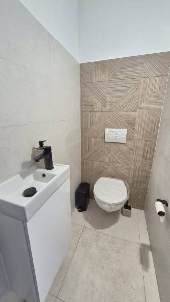 Baja csendes, nyugodt részén kínálunk megvételre egy 2024-ben épült, modern kialakítású, még nem lakott, kétszintes, téglaépítésű családi házat. A 145 m²-es lakótér egy 250 m²-es, parkosított telken helyezkedik el, ahol az öntözőrendszerrel gondozott udvar és a 12 m²-es terasz kellemes, nyugodt életteret biztosít a mindennapokhoz. A ház egész nap napfényes, világos belső tereit átgondolt kialakítás és modern megjelenés jellemzi.A földszinten a tágas, egybenyitott konyha–nappali–étkező a családi élet központja, amelyhez egy külön szoba, kamra és fürdőszoba kapcsolódik, valamint közvetlen átjárás nyílik a garázsból a lakótérbe. Az emeleten három hálószoba, gardrób, tároló és egy további fürdőszoba kapott helyet, így a ház ideális nagyobb család számára is. A szobák laminált burkolatot kaptak, a komfortérzetet hőszivattyús fűtés, klímák és kedvező H tarifa biztosítjanyilászárok 3 rétegűek.Az elektromos garázskapu, a biztonsági bejárati ajtó és a kaputelefon a mindennapi kényelmet és biztonságot erősítik. A modern műszaki tartalom és a nyugodt környezet elegáns, korszerű otthont kínál azoknak, akik új építésű, minőségi ingatlant keresnek Baján.Legyen Ön ennek az ingatlannak az első lakója!Irányár: 98.600.000 Ft