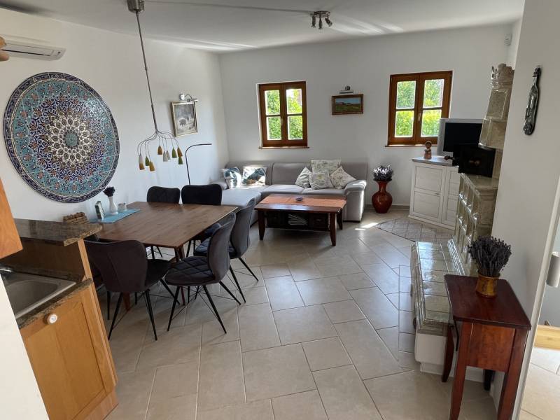 Panorámás szőlőhegyi ház Balatonfüreden – borospince, terasz, nagy telek!Balatonfüred csendes szőlőhegyi részén, 1868 m²-es telken eladó egy 158 m²-es kitűnő állapotú, igényes, Tihanyra néző panorámás ház téglaboltozatos borospincével, tágas terasszal, modern gépészettel és gondozott szőlővel. Az ingatlan Balaton-felvidék hagyományos stílusát és a kortárs építészet kifinomultságát ötvözi.Természetes, nemes anyagokból, helyi mesterek munkájával készült, így minden részlete a minőséget és tartósságot tükrözi.A ház a Balatonra nyíló panorámával és a természet nyugalmával ajándékoz meg, miközben Balatonfüred pezsgő élete néhány perc alatt elérhető.Főbb adatokHelyszín: Balatonfüred, szőlő besorolású telekTelek mérete: 1868 m² (gondozott szőlővel, díszkerttel, csúszdás mászókával, tágas parkolóval)Épület bruttó alapterülete: 158 m²Pince + földszint + tetőtér + borospince padlófűtés, extra radiátorok, sütőfunkciós cserépkályha, napkollektor – energiatakarékos kivitelPanorámás elhelyezkedés, természetvédelmi övezet mellettAz épületL-alakú, több szinten kialakított ház, tető- és homlokzatszigeteléssel, kettős hódfarkú betoncseréppel fedveTeljes alápincézés: tárolóhelyiség, infraszaunás, padlófűtéses fürdőhelyiség, gépészeti helyiségBorospince: földdel fedett téglaboltozatos, külön szellőzőkkel, tölgyfa ajtókkal, felülvilágítássalFöldszint: nappali + étkező (19,8 m²) + konyha (7,2 m² ) légtérben split klímával, vendégszoba (8,9 m²) + zuhanyzós fürdő (2,4 m²)Emelet: 2 hálószoba (20 és 10,2 m²) split klímákkal, sarokkádas fürdő (4,1 m²), külön WC (1,6 m²), tárolóKiegészítők: cserépkályha, infraszauna, félköríves terasz (25 m²), melynek burkolata felújításra szorul, így lehetőséget biztosítva a további egyéni igények kialakítására.Felszereltség és extrákViessmann gépészet: a tetőn elhelyezett napcellákkal a 705 l szünetmentes tápegységgel kiegészített puffertároló egész nyáron melegvizet, télen fűtésrásegítés funkciót biztosít.Fűtés: a föld alatti 5 m3-es propángáz tartály biztosítja a padlófűtést minden szinten, a nappaliban cserépkályha sütőfunkcióval, split klímák, a fürdőkben plusz törölközőszárító radiátorok.Nyílászárók: spalettás hőszigetelt tölgyfaablakok, mozgás-nyitásérzékelő riasztórendszerrel, kamerákkal.Szennyvíz: földalatti zárt szippantós.Kapcsolatok: meglévő UPC tányér és bevezetett telefonkábel, WIFI Extra: cserépkályha és infraszauna.Kert és telekTérkövezett parkoló, akár 5-6 autó részére1868 m² telek, melynek 80%-a gondozott szőlő (rizling, muskotály, csemegeszőlők)Vadkerítés, elektromos úszókapu, nagy parkoló világítássalCsepegtetőrendszer a díszkerthez, a szőlőben mozgásérzékelő reflektorok Játszótér: fa mászóka, csúszda, dupla hintaKerti tároló.ÁllapotÚjszerű, megkímélt állapotFolyamatosan karbantartvaEz az ingatlan tökéletes választás mindazoknak, akik Balatonfüreden keresnek nyugodt, panorámás környezetben épült, hivatalosan és szabályosan megépített gazdasági épületet, pince- és borospince-kapcsolattal, teljes infrastruktúrával, energiatakarékos gépészettel.