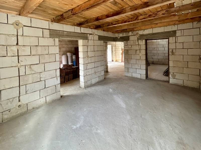 Eladó Vácduka csendes, aszfaltozott utcájában egy 148 m² alapterületű, szerkezetkész családi ház.Az ingatlan ideális választás azoknak, akik elkerülnék a bontási munkálatokat, és egy már korszerűsített, szilárd alapokon nyugvó házat szeretnének saját igényeik szerint befejezni. A telek adottságai:A 2398 m²-es, tágas telek közvetlen erdőkapcsolattal rendelkezik, a kert végét fás terület határolja, biztosítva a privát szférát és a nyugalmat. A telek méretéből adódóan (Lke-1 besorolás, 30%-os beépíthetőség) megosztható, így hosszú távon további lehetőségeket rejt. Az Ytong téglából épült ház kivitelezése évekkel ezelőtt kezdődött, majd egy hosszabb szünetet követően 2025-ben az épület jelentős állagmegóvási és korszerűsítési munkálatokon esett át. A felújítás során az alábbi fejlesztések valósultak meg• Tető: A tetőszerkezet teljes felújítást kapott új héjazattal és kész belső szigeteléssel.• Nyílászárók: Új, hőszigetelt műanyag nyílászárók kerültek beépítésre.• Szerkezet: A statikailag nem megfelelő részeket eltávolították. A belső térben jelenleg csak a főfalak állnak, így a válaszfalak elhelyezése és a belső elrendezés még teljesen szabadon alakítható.• Födém: A fa födém részben elkészült; a nyitott szakaszok lehetőséget adnak galéria kialakítására vagy a teljes beépítésre. Közművek:• Víz bevezetve• Villany bekötve, a mérőóra felszerelve; a mérőhelynél kialakított, működő konnektor pedig azonnali áramvételi lehetőséget biztosít• Gáz a telken belül• Csatorna a telken belül Környezet és elhelyezkedés:Az ingatlan infrastruktúrája kiváló: iskola és óvoda 250 méterre, orvosi rendelő és posta 700 méterre található. Vác mindössze 5 perc, Budapest pedig az M2-es úton 30 perc alatt elérhető. A tömegközlekedést rendszeres buszjáratok és a váci zónázó vonatok biztosítják. A ház azonnal birtokba vehető, az építkezés a rendelkezésre álló dokumentumoknak köszönhetően késedelem nélkül folytatható.Ez az ingatlan ideális választás lehet azok számára, akik:• saját otthonukat szeretnék kialakítani,• nyugodt, természetközeli környezetre vágynak,• befektetőknek, akik jó elhelyezkedésű fejlesztési lehetőséget keresnek Ha felkeltette érdeklődését az ingatlan, szívesen adunk további információt, vagy egyeztethetünk egy személyes megtekintést. Amiben segíteni tudjuk ingatlanvásárlását:•jogi háttér•földhivatali ügyintézés•ingyenes, bankfüggetlen hitelügyintézés (CSOK+, Babaváró, Otthon Start)•energetikai tanúsítvány elkészítése•biztosítás•belsőépítész