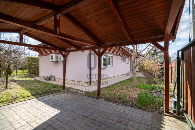Eladó igényes, saját részre épített családi ház Budafok csendes részén – 108 m² + 36 m² mélygarázs, gyönyörű parkosított kerttelBudafok legfelkapottabb kertvárosi részén, a Tegzes utca környékén lévő, csendes kis utcában, egy 760 m²-es, saroktelken elhelyezkedő, gondosan megépített, kiváló állapotú családi ház eladó. Az ingatlan 2006-ban saját részre épült, pince + földszint kialakítású, összesen a garázzsal együtt 132 m² hasznos alapterülettel.Főbb jellemzők:-Alapterület: 132 m² (nappali + helyiségek + garázs) +25 m² terasz-Telek mérete: 760 m² – gondozott, parkosított kerttel, gyümölcsfákkal, kerti sütögetővel-Építés éve: 2006-Energetikai besorolás: DElosztás, helyiségek:-Tágas nappali-2 hálószoba + 1 félszoba (dolgozó/gardrób célra is alkalmas)-Gardróbszoba-Külön konyha + kamra-10 m²-es fürdőszoba (zuhanyzó + kád)-Külön WC-25 m²-es déli fekvésű terasz közvetlen kertkapcsolattal és sziklakerttelGépészet, extrák:-Fűtés: Gázkazán padlófűtéssel + radiátorokkal-Melegvíz ellátás: Napkollektor + melegvíz-tartály (puffertartályos rendszer)-3 db hűtő-fűtő klímaberendezés-Vízlágyító berendezés-Riasztórendszer-Műanyag nyílászárók redőnnyel, fa beltéri ajtók-Burkolatok: parketta és járólap kombináció-Hőszigetelt padlásfödém-Falazat: tégla, 10 cm külső szigeteléssel-Tető: Bramac betoncserép, sátortetős kialakítás, napkollektorral a déli oldalonParkolás, garázs:-36 m²-es, fűtött mélygarázs, elektromos garázskapukkal – akár 2 autó számára-Kerti beálló egy további autónak-Automata kapu és garázsajtókKözművek:-Teljes összközműves ellátottság: víz, villany, gáz, csatorna-Elektromos kapu és riasztó rendszerKiváló közlekedés: Mindössze 10 perc alatt elérhető Kelenföld vasútállomás és a 4-es metró végállomása, így a város bármely pontja könnyen megközelíthető. Autóval több útvonalon keresztül is gyorsan elérhető a belváros, míg az Allee bevásárlóközpont és a budaörsi nagyáruházak mindössze 10–15 perces autóútra találhatók. Közelben lévő buszjáratok: 150, 150B, 250, 250B, 251, 251A, 251BEz a Budafok kertvárosi részén található ingatlan tökéletes választás családok számára, akik minőségi kivitelezésű, jól megtervezett otthont keresnek nyugodt környezetben, mégis kiváló közlekedéssel és infrastruktúrával.Ne hagyja ki ezt a remek lehetőséget – tekintse meg személyesen is!