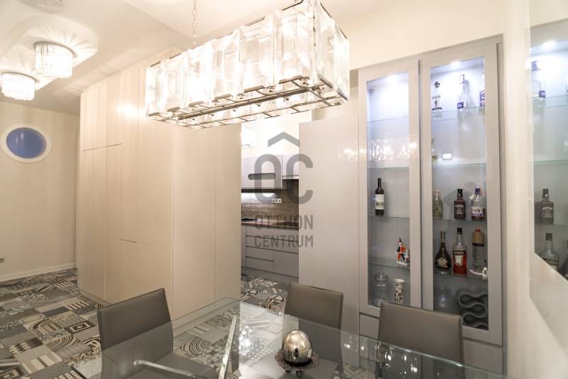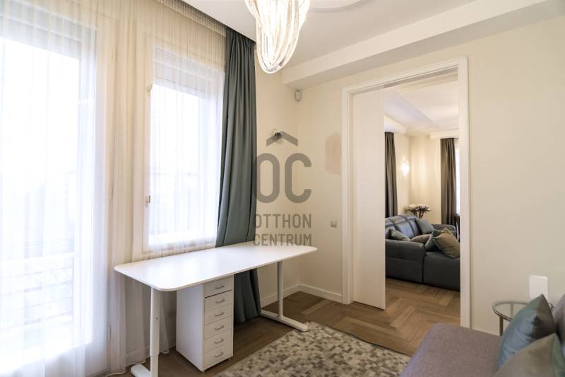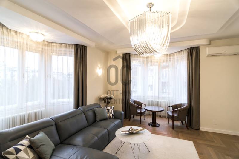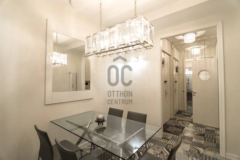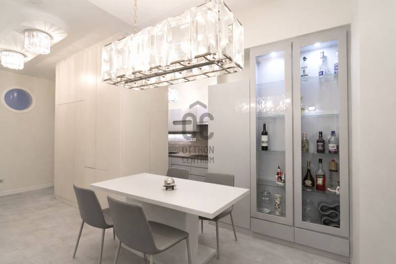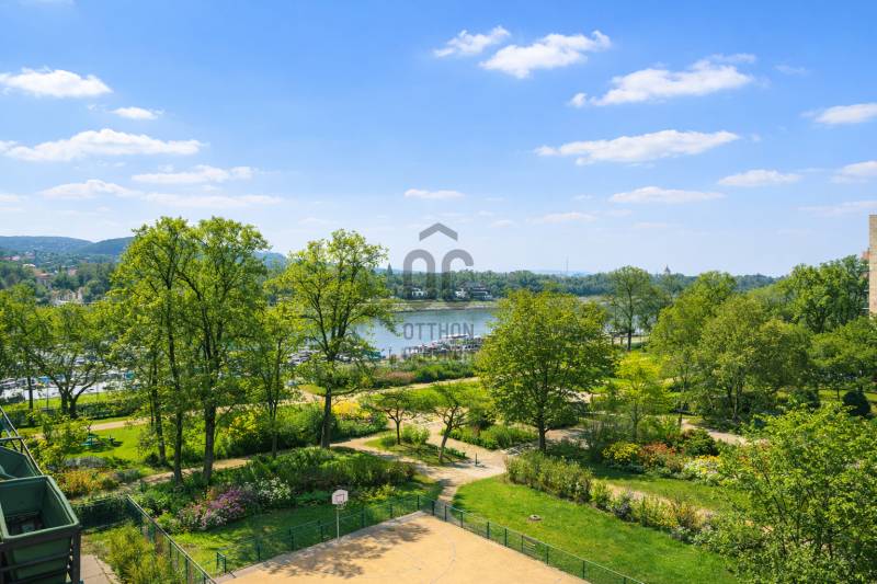 Közvetlenül a Szent István Park mellett kínálunk megvételre egy 4. emeleti, háromszobás saroklakást, amelynek egyik legnagyobb értéke a kivételes elhelyezkedés és a több irányba nyíló panoráma. A lakásból egyszerre élvezhető a Szent István Park zöld látványa, a Duna panorámája, valamint a Pozsonyi út klasszikus eleganciája – ez a ritka adottság teszi igazán különlegessé ezt az ingatlant.A saroklakás néhány éve teljes körű műszaki és esztétikai felújításon esett át, belsőépítész tervei alapján. Az enteriőrt egyedi gyártású ajtók, bútorok és igényes burkolatok határozzák meg, a gondosan megválasztott világítási elemek, köztük a karakteres csillárok pedig elegáns, kifinomult hangulatot teremtenek.A biztonsági bejárati ajtón belépve egy tükrös beépített szekrénnyel ellátott előszoba fogad, innen nyílik a zuhanyzós fürdőszoba és az étkező, ahol szintén egyedi tervezésű, letisztult bútorok kerültek beépítésre. A közlekedőből további fürdőszoba érhető el, majd a lakás központi tere, a tágas nappali következik, amelyet nagy ablakfelületek, stílusos álmennyezet és halszálkás mintában lerakott fa parketta tesz igazán karakteressé. A nappaliból nyílik a két erkélyes hálószoba, amelyek tovább erősítik a lakás világos, átgondolt térélményét.Az ingatlan távfűtéssel rendelkezik egyedi méréssel, a korszerű fűtőtestek megjelenésükben a klasszikus stílust idézik, miközben megfelelnek a mai elvárásoknak.Újlipótváros nem csupán lokáció, hanem egy stabil értéket képviselő életérzés, ahol a park közelsége, a Duna látványa és a városrész hangulata hosszú távon is kiemelkedő értéket biztosít. A környék egyik ismert sajátossága a parkolás nehézsége, ugyanakkor ennél az ingatlannál megoldást jelent, hogy a lakástól mindössze 2 percre teremgarázs beálló is elérhető, amely külön, 15 millió forintért megvásárolható.Az ilyen adottságú, panorámás saroklakások ritkán kerülnek piacra ezen a környéken – érdemes személyesen is megtekinteni!A képek között látványtervvel minimalista burkolattal is megmutatjuk a konyhát - étkezőt. Az eredeti és a tervezett állapot egymás után látható.