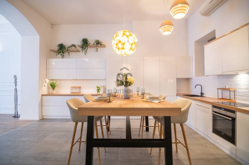 Európa egyik legszebb sugárútja, a kontinens első föld alatti vasútja, az Operaház, színházak, kávézók, luxusüzletek, múzeumok, bérpaloták,alig több, mint 150 éve épült az Andrássy út és ma már a Világörökségünk része.Itt épült a Mendl-bérpalota neoreneszánsz épülete is, csak egy sarokra az Operaháztól és az egykori Balettintézettől - ma már W Budapest luxushotel -,Az épület felújított, liftes, udvarán restaurált, korabeli kútszoborral.A lakás a II. emeleten van, nappalija az Andrássy útra néz,ízlésesen felújított, 136 m2,a tágas nappali - étkező - konyha a maga 65 m2 - vel központi része a lakásnak, családi-baráti-üzleti alkalmak méltó helyszíne,3 szobája jelenleg háló és dolgozóként használt.A lakás klimatizált, fűtése gáz cirkó.Akár a történelmi, pesti belváros prémium részén képzeli el otthonát, akár befektetésként vásárolna, ajánlom figyelmébe ezt a kivételes adottságú, Andrássy úti lakást.