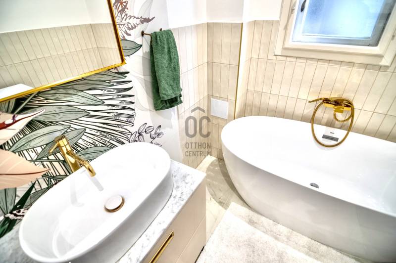 Budapest belvárosában, az V. kerületben, a sétáló Váci utca közvetlen közelében, a Nyáry Pál utca csendes és elegáns szakaszán eladó egy egyedülálló, teljes körűen felújított, 89 m²-es, erkélyes lakás.Központi elhelyezkedése ellenére az utca ezen része gyalogos, rendkívül nyugodt, így a lakás ritka kombinációját nyújtja a városi életnek és a meghitt nyugalomnak.Építészeti értékkel rendelkező házAz épület 1933-ban épült, tervezője Györgyi Dénes, a kivitelezést Sorg Antal vezette – koruk meghatározó alakjai.A ház építészete a modernizmus és a klasszikus elemek kifinomult ötvözete. A homlokzat különlegessége az elliptikus, homorú francia udvar, amely egyedi karaktert és rangot ad az épületnek.Az épület kívül-belül kiváló állapotban van, modern panorámalifttel, rendezett, reprezentatív lépcsőházzal és nyugodt, intelligens lakóközösséggel rendelkezik.Fény, tér és lenyűgöző kilátásA lakás a 4. emeleten található, ennek köszönhetően rendkívül világos.Az utcai 2 m²-es erkélyről ritka és lenyűgöző panoráma nyílik a Gellért-hegyre és a Szabadság-szoborra – olyan kilátás, amely egész évben értékálló és soha nem beépíthető.Elrendezés és felszereltségTulajdoni lapon szereplő alapterület: 89 m² + erkélyEgy légtérben kialakított nappali–étkező–konyhaKét különnyíló, tágas hálószobaKét fürdőszobaBeépített infravörös szaunaUtcára néző ablakokNappaliban és hálószobákban modern hőszivattyúk (hűtés–fűtés)Fűtés: házközpontiKözös költség: kb. 55 000 Ft, amely tartalmazza a fűtést és a vízfogyasztástMeleg vizet két energiatakarékos bojler biztosítjaMinőség, stílus és kényelemTeljesen megújított elektromos és vízvezeték-hálózatEredeti fa nyílászárók korszerű hőszigetelésselA lakás teljes bútorzattal és gépesítve kerül eladásraEgyedileg gyártott bútorok, prémium kész megoldásokMagas minőségű burkolatok, Carrara márvány munkapultokA nappaliban bioetanol kandalló a meghitt hangulatértElektromos redőnyökRiasztórendszerElhelyezkedés, ami önmagáért beszél5 perc sétára a Duna-partKözel a Fővám tér és a NagyvásárcsarnokFerenciek tere és Kálvin tér metróállomások 5 percen belülA szomszéd utcában bérelhető mélygarázsKávézók, éttermek, üzletek, kulturális és történelmi látnivalók a közvetlen közelbenElit, biztonságos és presztízs értékű környék, ideális saját célra és prémium befektetésnek isAzonnal költözhetőA lakás tehermentes és azonnal birtokba vehető – tökéletes választás azok számára, akik a minőséget, az építészeti értéket, a panorámát és a kifogástalan lokációt keresik.Szívesen válaszolok kérdésekre és megszervezem a megtekintést.