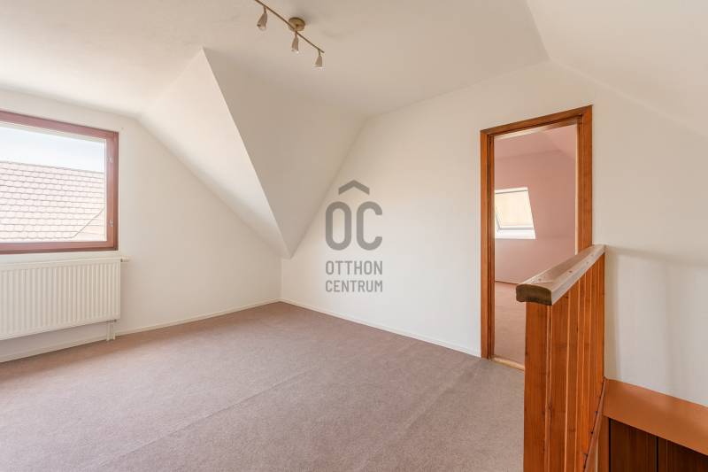 Szigethalmon, nyugodt zsákutcában eladó az alábbi sorházi , középső lakásSzigethalom egyik új lakóparkjának szomszédságában, csendes, erdő közeli zsákutcában kínálunk megvételre egy kétszintes, könnyűszerkezetes sorházi lakást, amely a középső lakásként helyezkedik el a sorban.Főbb jellemzők:-Építés éve: 2005-Szerkezet: könnyűszerkezetes-Tető: cseréptető, az elmúlt években felújítva-Alapterület: 76 m² (tulajdoni lap szerint)-Telek: a képen látható méretű, amelyen egy 3x3 méteres tároló is található (az ár részét képezi)Helyiségek elosztása:Földszint:-Nappali – étkező – konyha: 29 m²-Fürdőszoba: 5,7 m²-Előtér: 3,51 m²-Tetőtér (bruttó méretek):-Szoba: 12,54 m²-Szoba: 9,3 m²- Nappali: 12,54 m² (gyakran harmadik hálószobává alakítják)Műszaki adatok:-Összközműves, alacsony fenntartási költségekkel-Fűtés: gázkazán, radiátoros hőleadókkal-Ablakok: redőnnyel felszereltekA kert jelenleg tároló funkciót tölt be, de könnyen füvesíthető vagy gépkocsi beállónak is átalakítható — az új tulajdonos igényei szerint.A fotók között talál, már fehér falakkal megjelenőt is, melyeket a viszonyítás érdekében jelentettem meg. Hiszen az új ingatlantban, szinte mindig festéssel kezdjük, így szerintem segítség, ha előre látja milyen lehetne.Környék:A lakókörnyezet csendes és családbarát, a szomszédságban fiatal családok és idősebb lakók egyaránt megtalálhatók.500–1200 méteren belül elérhető: buszmegálló, piac, közért, kertészet, állatorvos, iskola és más szolgáltatások.Kinek ajánljuk?Ideális választás fiatal pároknak vagy kisebb családoknak, akik szeretnének elszakadni a város nyüzsgésétől, de továbbra is Budapest közelében, mégis nyugodt, zöld környezetben élnének.Hitelügyintézésben is díjmentes segítséget biztosítunk, hogy megtaláljuk az Ön számára legkedvezőbb konstrukciót.Hívjon bizalommal, amennyiben felkeltette érdeklődését az alábbi lehetőség.