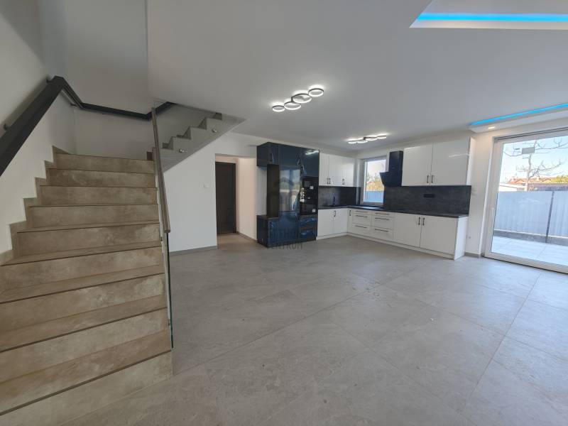 Vecsésen PRÉMIUM kivitelezésű ikerház eladó• újépítésű • nettó 145.38 m2 + 6.25 m2 erkély + 30 m2 terasz • hatalmas amerikai konyhás nappali • LED hangulat világítás• öt hálószoba (egy a földszinten, négy az emeleten)• két fürdőszoba (zuhanyzós és kádas)• fűtése: hőszivattyú, padlófűtés az egész házban• színezett hűtő-fűtő klímák • szennyes ledobó az emeletről• minőségi burkolatok • térkövezett járdák (még kialakítás alatt)• riasztó• telek: 332 m2Kivitelező saját részre épített, de végül nem beköltözött háza eladó tényleg prémium minőségben. Tömegközlekedés 5 perc gyalog 576, 578, vonat: 15-20 perc. Szinte azonnal költözhető!