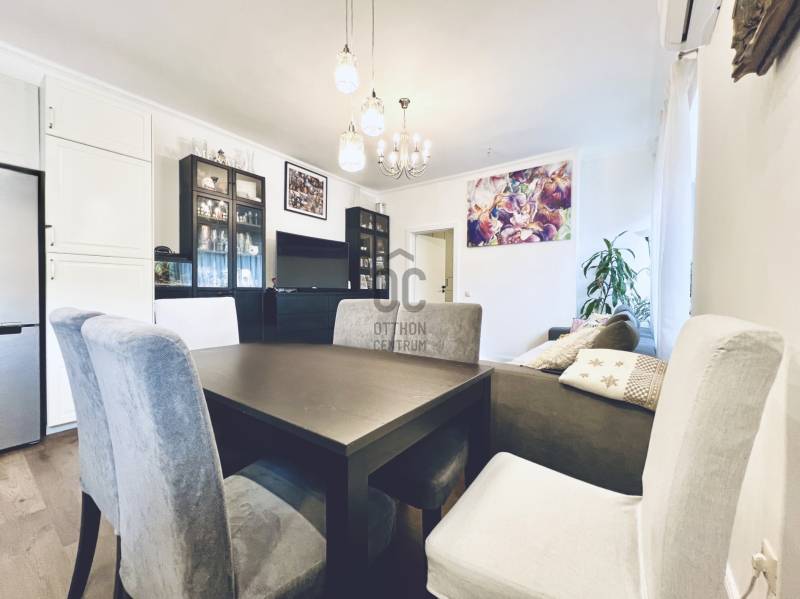 XII. kerületben, Farkasvölgyben, Mártonhegy határán, zöld környezetben keresi új tulajdonosát egy földszinti, 4 szobás, 80 m2-es lakótérrel, 27 m2-es terasszal, kerttel és 2 autóbeálló hellyel rendelkező lakás. Ha jó presztízsű, értékálló környéken szeretné megtalálni hangulatos új otthonát, akkor ezt feltétlenül nézze meg!KÖRNYÉK és KÖZLEKEDÉS:- XII. kerület déli része, Farkasvölgy.- Kifejezetten zöld, jó infrastruktúrával rendelkező, nagyon kedvelt környék.- A lakástól néhány percre elérhető iskola, óvoda, gyógyszertár, zöldséges, játszótér és pékség is.- A MOM Park, a Hegyvidék Központ, az Etele Pláza és Gazdagrét bevásárlási lehetőségei autóval pár perces távolság.- Az 53-as busz 1 perc sétatávolságra van, amellyel Kelenföldön elérhető a 4-es metró.- Márton Áron téren átszállhatunk az 59-es villamosra és a 8-as buszra amelyekkel a belváros könnyen megközelíthető.- Az M1-es és az M7-es autópályák öt percen belül elérhetőek.- A Sas-hegy és a Széchényi-hegy kiránduló útvonalai a közelből indulnak.- Az utcában a parkolás díjmentes.TÁRSASHÁZ:- 1943-ban épült, 1 szintes, 3 lakásos téglaépület.- Műszakilag rendszeresen karbantartott társasház, gondozott kerttel, kulturált lakóközösséggel.- Homlokzata szigetelt, jó állapotú.- A kertben öt gépkocsi részére beálló helyeket alakítottak ki, amelyből kettő tartozik a lakáshoz.LAKÁS:- Földszinti, 80 m2-es, 4 szobás, 27 m2-es terasszal rendelkező, esztétikailag frissen felújított ingatlan.- Felosztása: előszoba, amerikai konyhás nappali és étkező, 3 hálószoba, 1 fürdőszoba-wc, külön wc, tároló.- Tájolása észak-keleti, a nappali és a 12 m2-es hálószoba ablakai a gondozott utcafronti előkertre néznek.- A műanyag nyílászárók hang és hőszigeteltek, elektromos alumínium redőnyök gondoskodnak az árnyékolásról.- Az összes helyiséget vinyl padlóval burkolták, a belmagasság 270 cm.- Fűtését kondenzációs kazán látja el, a hő-leadást radiátorok biztosítják, a fürdőszobába törölközőszárítót is szereltek.- A hűtésről hűtő-fűtő klíma gondoskodik.- A vastag falak télen-nyáron tartják az ideális hőmérsékletet.- A villany-, a víz-, és a gázfogyasztás egyedi mérés alapján fizetendő, a lakás fenntartási költsége kedvező.- Az ingatlanhoz tartozik egy 27 m2-es terasz, amelyről néhány lépcső vezet a kertbe.- Ezenkívül az alagsorban egy körülbelül 6 m2-es tároló is rendelkezésre áll.AZ INGATLAN MEGTEKINTHETŐ:- Személyesen- Online személyes bejelentkezésselFINANSZÍROZÁSI KÉRDÉSEKBEN – ONLINE IS – SEGÍTÜNK!- Bank-független hitelcenterünk díjmentesen versenyezteti az összes bank és hitelintézet ajánlatát.- Önnek csak annyi a dolga, hogy egyeztet munkatársunkkal, majd kiválasztja a hosszú távon is legkedvezőbb konstrukciót.- Szakértőink 20+ év tapasztalattal, fogyasztóbarát lakáshitelekkel, babaváró hitellel és teljes körű CSOK Plusz és OTTHON START program ügyintézéssel várják.- Időpont-egyeztetéssel munkaidő után is elérhetők.Hangulatos és igényes ingatlan, ajánlom korosztálytól függetlenül kiváló adottságai miatt.Kérdés esetén és megtekintési időponttal kapcsolatban várom hívását!