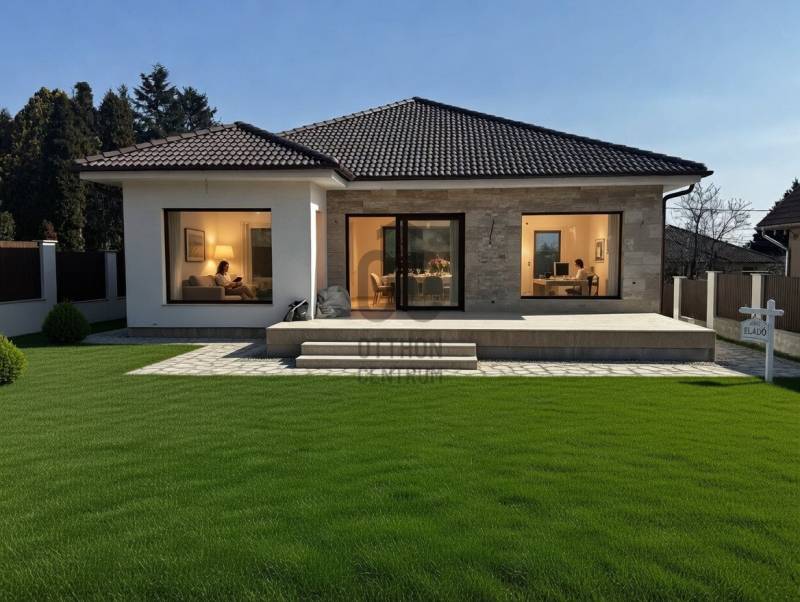 Új építésű családi ház eladó Érd, Fenyves-Parkváros csendes részénÉrd Fenyves-Parkváros nyugodt, autópályától távol eső részén kínálok megvételre egy új építésű, átgondolt elrendezésű családi házat, megbízható, referenciákkal rendelkező kivitelezőtől, több éves garanciával.Átadás: szerződéskötést követően 1–2 hónapon belül.Helyiségek:Nappali + étkező (36,6 m²), konyha (8,4 m²), kamra (3,11 m²), előszoba (11,46 m²),3 külön nyíló hálószoba (13,68 m², 13,68 m², 11,4 m²), gardrób (5,7 m²),2 fürdőszoba (zuhanyos és kádas, WC-vel – 6,9 m² és 6,95 m²),külön WC (2,2 m²), közlekedő (2,04 m²), mosókonyha/gépészet (3,9 m²),garázs (20,3 m²), terasz (30,5 m²).Műszaki tartalom:motoros redőnyök, dióbarna faerezetes nyílászárók, mennyezeti hűtés-fűtés,Panasonic BI-Bloc levegő hőszivattyú, klíma, vízlágyító,audió kaputelefon, DSC riasztórendszer, elektromos úszókapu és garázsbejárat.30-as tégla + 15 cm szigetelés, E gerendás betonfödém 20 cm szigeteléssel,travertin mészkő burkolatok.Választható belső elemek (a vételár része):burkolatok 13.500 Ft/m²-ig,szaniterek és csaptelepek 1,2 M Ft-ig,beltéri ajtók max. 200.000 Ft/db.Buszmegálló kb. 5 perc sétára található.Megtekintés rugalmasan. További információért várom hívását.