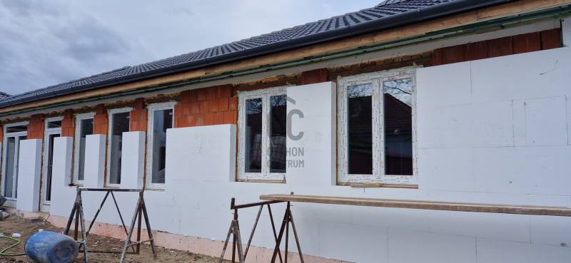 Bocskaikert központjában 2026. II. negyedévi átadással eladó egy nettó 84 m2-es, földszintes, nappali-amerikai konyha - étkező + 3 külön nyíló szobás ház, saját kis kertrésszel, gépkocsibeállóval, az alábbi paraméterekkel:-Nappali-amerikai konyha + 3 külön nyíló szoba-Földszintes kialakítás-Porotherm 30 falazóblokkból + 15 cm hőszigetelés-Gázcirkó fűtés, igény szerint padlófűtés-Betoncserép fedés-Fedett terasz, épített tároló-Saját kertrész, gépkocsibeállási lehetőséggel-Második gépkocsinak van hely az épület előtt-Klíma, 3 rétegű, hőszigetelt műanyag nyílászárók, minimális rezsi-Társasház alapító okirattal, önálló helyrajzi számra kerülő lakások, CSOK+ alkalmasak-A lakóegységek csak a tárolóknál csatlakoznak, ebből fakadóan a lakások teljesen különálló épületek, külön tetőszerkezettel-Az átgondolt tervezésnek köszönhetően dupla komfortos ingatlanok épülnek, a szülői hálóból külön zuhanyzó és WC nyílik a közös fürdőszoba mellett. A különálló 2. WC mellett még egy háztartási helyiség is helyet kapott.-A tárolónak vasbeton alap készül, egybe lesz öntve az épülettel, igényesen kerül kivitelezésre-A középső lakásban a szülői hálóban master bedroom kerül kialakításra, gardrób és fürdő épül, a konyhából pedig egy kamra és háztartási helyiség is nyílik.Minden helyi célpont kényelmes sétatávolságra található, Debrecen központja még a reggeli csúcsban is 13 perc alatt elérhető.Az építkezés elkezdődött, 2026. nyarán költözhető, hitel, CSOK+ igényelhető.Részletes műszaki tartalommal, megtekintési időponttal kapcsolatban várjuk hívását a hét minden napján!