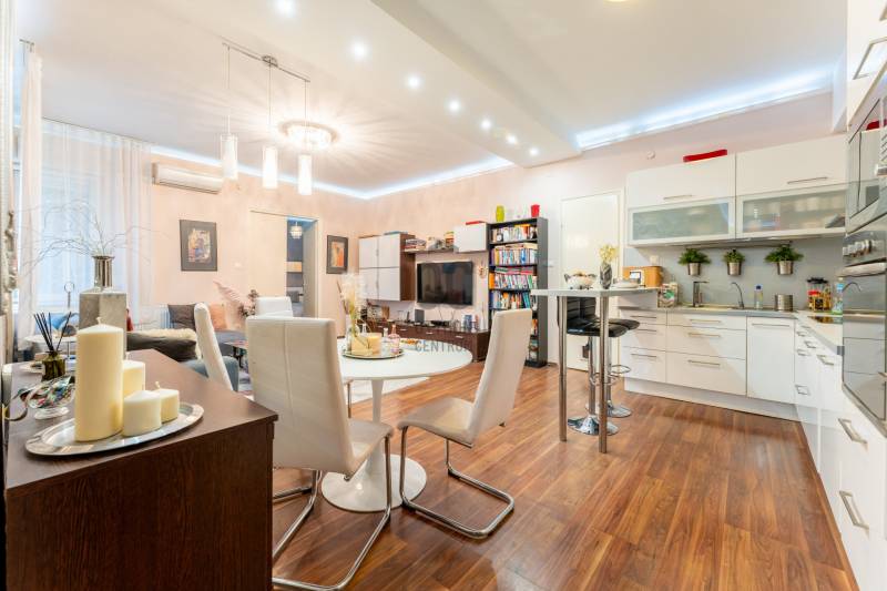 ÁRCSÖKKENTETT!Eladásra kínálunk egy kivételes adottságokkal rendelkező lakást Budapest egyik legértékesebb és legpatinásabb városrészében, a Lánchíd utcában, közvetlenül a Budai Vár és a Várkert Bazár szomszédságában.Az ingatlan egy 1935-ben épült, Bauhaus stílusú, liftes társasház 2. emeletén található. A 90 m²-es, 300 cm belmagasságú lakás teljes körűen felújított lakás nyugati tájolásának köszönhetően rendkívül világos és napfényes, erkélyéről lenyűgöző kilátás nyílik a Budai Várra. A környék kiváló közlekedési infrastruktúrával rendelkezik: a 19-es és 41-es villamos megállója, valamint a 16-os, 216-os és 105-ös buszok megállója néhány perces sétával elérhető a Clark Ádám térről.A közelben található Várkert Bazár számos kulturális programnak ad otthont, így a környék nemcsak exkluzív, hanem élhető és pezsgő városi életet is kínál. A Rudas, Gellért és Lukács fürdők is gyorsan megközelíthetőek.A lakás elosztása ideális és jól átgondolt: amerikai konyhás nappali étkezővel, két külön nyíló hálószoba, egy kádas fürdőszoba WC-vel, egy zuhanyzós fürdőszoba, külön WC, előszoba és háztartási helyiség található benne. Az ingatlanhoz tartozik egy 4 m²-es erkély, valamint egy 4 m²-es, zárható pincei tároló is.A műszaki tartalom kiemelkedő: teljes körű felújítás történt, beleértve a víz- és villanyvezetékek cseréjét, új radiátorokat, nyílászárókat, valamint biztonsági rendszert. A nappali klimatizált, a konyha gépesített, modern és magas fényű bútorokkal felszerelt. A lakás energiahatékony LED világítással, redőnyökkel, szúnyoghálókkal, riasztóval és biztonsági bejárati ajtóval rendelkezik. Igény esetén a teljes bútorzat is megvásárolható.A társasház rendezett, jó anyagi helyzetű, karbantartott épület, újonnan telepített lifttel, korszerű központi fűtéssel, frissen felújított hangulatos belső udvarral, kamerarendszerrel és kaputelefonnal.A parkolás kedvező feltételekkel megoldható: az I. kerületi lakók éves kedvezményes díjért parkolhatnak az utcán, emellett garázsbérlés is elérhető a közeli Várkert Bazár mélygarázsában.Az ingatlan irányára 185 millió forint, teljes bútorzattal, lámpákkal és berendezésekkel 186,9 millió forint.+ Egyedi igényekre szabott lakáshitelekkel állunk rendelkezésére.+ Bankfüggetlen Hitel Centrumunk az országban elérhető összes bank és hitelintézet ajánlatát versenyezteti az Ön számára díjmentesen.+ Munkatársaink nagy szakmai tapasztalattal várják Önt az előre egyeztetett időpontban, akár a normál munkaidő után is.Ne hagyja ki ezt a lehetőséget – keressen bizalommal még ma, és tekintse meg személyesen!