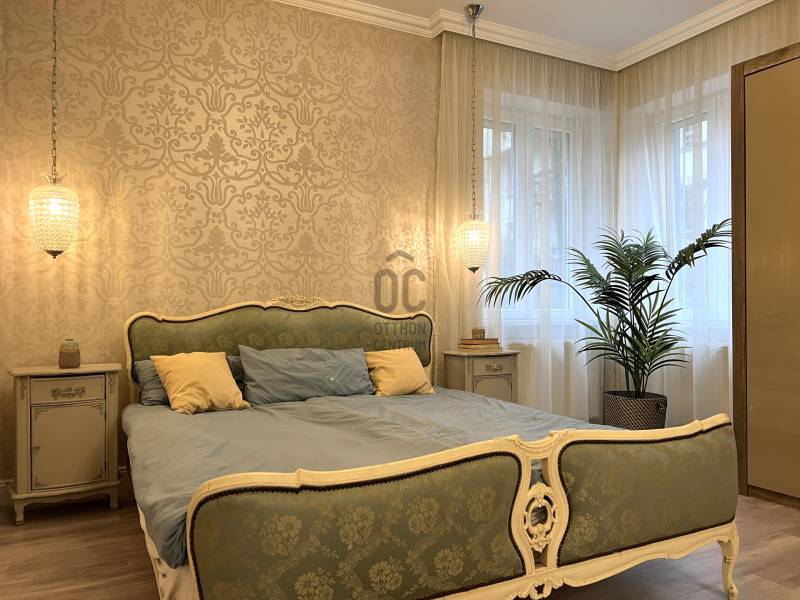 Amennyiben olyan otthont keres, ahol a csend és az elegancia találkozik a pezsgő városi élettel, akkor ez a lakás Önre vár. A II. kerület egyik nyugodt mellékutcájában, mégis kivételesen központi elhelyezkedéssel kínálunk megvételre ezt a teljes körűen felújított, azonnal költözhető, stílusos lakást.A Mammut Bevásárlóközpont, a Millenáris park és a Marczibányi tér mindössze 5 perc sétára található, így üzletek, éttermek, kávézók és kulturális programok karnyújtásnyira vannak – autó nélkül is. A közlekedés kiváló, parkolás a ház előtt, az utcán megoldott, vagy a Millenáris park alatti mélygarázsban is lehetséges.A karbantartott, patinás társasház magasföldszintjén elhelyezkedő lakás tágas terekkel és kellemes arányokkal rendelkezik. Ablakai csendes mellékutcára néznek, így a városi nyüzsgés teljesen kizárható. A lakás saját fűtésrendszerrel, valamint egyedi mérésű közművekkel felszerelt, a közös költség mindössze 19.400 Ft.Az igényesen megtervezett belső tér két fürdőszobát kínál, ami ritka kényelmet biztosít. A nappali meghitt hangulatát egy bioetanol kandalló emeli, míg az elektromos redőnyök a nappaliban és a hálószobában tovább fokozzák a komfortérzetet.A praktikumról sem kell lemondani:•beépített szekrények segítik az átlátható tárolást,•külön pincetároló áll rendelkezésre.Ez a lakás ideális választás igényes pároknak, akik értékelik a minőséget, a nyugalmat és a belvárosi életstílust – kompromisszumok nélkül.