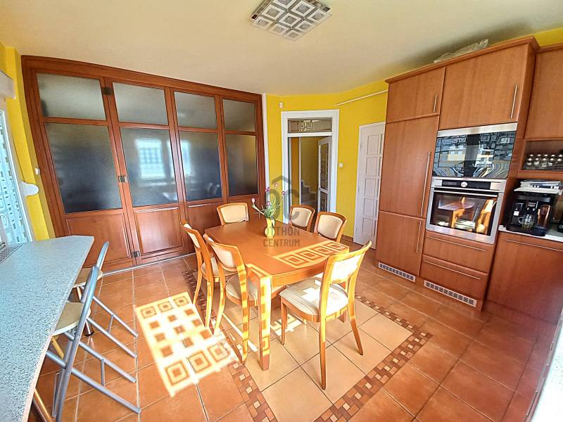 Nappali + 4 szobás, 176 nm-es, kiváló elrendezésű családiház, dupla garázzsal eladó!Debrecenben Veres Péter kert részén, gondozott, szép környezetben lévő, családi otthon.A ház paraméterei:Földszint: 108nm- konyha-étkező közvetlen fedett teraszkapcsolattal- tágas nappali mely igény szerint egybenyitható az étkezővel- 18 nm-s fürdőszoba, 4 személyes finn szaunával és zuhanykabinnal- 16 nm-s hálószoba beépített bútorzattal- előszoba, közlekedő, kamraEmelet:68 nm- 3 teljesértékű, világos hálószoba, mely közül kettő erkéllyel és beépített bútorzattal rendelkezik- fürdőszoba hidromasszázs káddal, WC -vel és bidével- társalgó amelyben dolgozó helyiség került kialakításra Műszaki tartalom:- 1992 ben épült bruttó 178 nm -s alapterülettel rendelkező 2 szintes családiház - 3 rétegű üvegezéssel ellátott műanyag nyílászárók,- külsö hőszigeteléssel elátott, energetikai tanúsítvány szerint A++ besorolású - esztétikus konyha, minőségi, 3 éves AEG konyhagép családdal felszerelve- 7,4 KW- os napelem rendszer- gáz- cirkó fűtés duplasoros lemez radiátoros hőleadókkal - 5 db hűtő -fűtő klíma: 3 az emeleti szobákban és 2 db a földszinten- a ház több helyiségében található beéptett bútorok a vételár részét képezik ( hálószobák, előszoba, fürdőszoba)- riasztórendszer és videókaputelefon- 30 nm-s duplagarázs, mely távirányítós, elektromos kapuval, és elektromos autó töltővel ellátva- az ingatlan kertje körbekerített, füvesített és térkővel burkolt, kiépített öntöző rendszerrel és külön vízórával ellátott.Egyeztessünk a részletekről és nézze meg mihamrabb!Debrecen, Veres, Család, ház, kert, dupla, garázs, panoráma, terasz, nappali+ 4 szoba, 5 szoba, eladó, nagy, park,