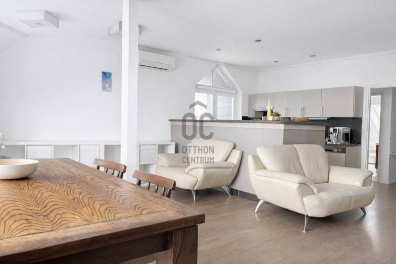 Eladó a II. kerületben, a Parlamentre és a Margitszigetre panorámás, 80 m²-es, 2. emeleti, 3 szobás, világos, erkélyes lakás.Fontosabb tudnivalók a lakásról:•Nappali: 42,33m², Szoba: 8,44m², Szoba: 9,27m², Fürdő: 4,84m², Köz.: 6,68m², Wc: 1,8m².•Terasz: 2,23m², Erkély: 3,75m².•Az alagsorban tartozik hozzá egy tároló: 9,47 m².•Összes lakóterület: (80,06 m² + 2,23 m² + 3,75 m² + 9,47 m²) = 95,51 m².•A lakásban található terek tágasak és világosak, az ablakok zöldre néznek.•A lakás klímával felszerelt.•Fűtése gáz (cirko).•Osztatlan közös tulajdon.Fontosabb tudnivalók a házról:•Az épület karbantartott, homlokzata 5 éven belül lett felújítva.•Az udvaron sütésre alkalmas lugas, tégla kemencével, kb.12 fő részére biztosít kikapcsolódást.•3 lakásos sorház egy lépcsőházában egy 4 szintes lakás, második emeleti lakása.•A közös költség 10.000.- Ft.Fontosabb tudnivalók a környékről:•Csodálatos panoráma a Margitszigetre és a Parlamentre.•Zöld környezetben Modern játszótér és Sportpálya található.•Áldás utcai iskola és óvoda, Árpád úti szakközép iskola.•Közelben a Rózsakert bevásárló központ.•A társasház fákkal és növényekkel körbe-körbe ültetve.•Autóbusz: 29, 9, 91, 191, 291, 923, 934, 960, 931, 111, MU5, Metró: M2, Villamos: 17, 19,Ez a lakás ideális választás lehet mindazok számára, akik szeretnének egy csendes zöld környezetben, de jól megközelíthető környéken élni, ahol fantasztikus panoráma van és a mindennapok kényelme biztosított.Egyedi igényekre szabott lakáshitelekkel állunk rendelkezésére.Bankfüggetlen hitelcentrumunk az országban elérhető összes bank és hitelintézet ajánlatát versenyezteti az Ön számára díjmentesen.Munkatársaink nagy szakmai tapasztalattal várják Önt az előre egyeztetett időpontban akár a normál munkaidő után is.
