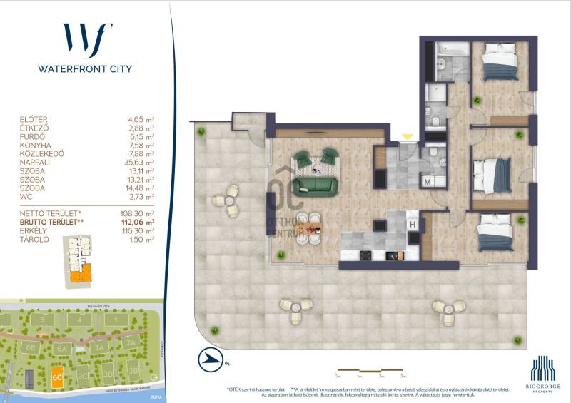 Azonnal költözhető penthouse a Duna felett. Ez olyan lakás, ahol semmiben nem kell kompromisszumot kötnöd. Üdv itthon.RÖVID ÖSSZEFOGLALÓBudapest III. kerületének Óbudai részén, a Duna és a Hajógyári sziget szomszédságában, a kerület új városnegyedében található ez a 9. emeleti, 110 m² alapterületű lakás, melyhez 117,8 m²-es terasz tartozik. A lakás Dunai és városi panorámával rendelkezik, 3 hálószobával, 2 fürdőszobával, külön WC-vel, világos és az átlagosnál magasabb belmagassággal.Miért válassza ezt a lakást:- Gyönyörű panoráma a Dunára, a városra: a Parlamentre, a Citadellára és a Várra.- Örökpanorámás, ugyanis a későbbi építkezések nem vesznek el a kilátásból.- Hatalmas teraszon kényelmesen elfér az egész család.- A legfelső emeleten helyezkedik el.- Kiváló elrendezés, mely három külön nyíló hálót biztosít.- A város legjobb iskolái a közelben találhatóak.- Észak-Budaról könnyen és gyorsan elérhető a belváros.Ez a tökéletes otthon olyan különleges jellemzőkkel rendelkezik, melyek kiemelik a piacról. Ritkán fordul elő hasonló paraméterekkel rendelkező lakás. Ne hagyja ki ezt a lehetőséget!LAKÁSEz az ingatlan kivételes alapot kínál egy igazán prémium, egyedi otthon megvalósításához. A fotók között szereplő látványtervek megmutatják, milyen elegáns és modern enteriőr alakítható ki, ha a lehetőségek maximálisan ki vannak használva. Az emeleten a magasabb belmagasság tágasabb, komfortosabb életteret teremt, míg a nagyméretű ablakok bőséges természetes fényt és minden helyiségből különleges kilátást biztosítanak. A hatalmas terasz tökéletes helyszíne lehet a városi panoráma élvezetének, akár pihenéshez, akár vendéglátáshoz. Az eredeti alaprajzhoz képest már történtek átgondolt módosítások is, többek között a fő hálószoba saját fürdőszobát kapott, tovább erősítve az otthon kényelmét és exkluzivitását.A lakás prémium csomaggal elérhető: ami azt jelenti a vételár tartalmazza az alábbi extra felszereltséget:- tolóajtók a nappaliban, és a fő hálószobában- elektromos redőnyök- fa szalagparketta- 3 m belmagasság- teraszon tárolóhelyiséggelA lakáshoz tartozik 2 nagy méretű ( 14 és 15 m2) teremgarázs hely (8,5 M Ft/db) és egy 4 m2 tároló is (3,5 M Ft). Megvásárolásuk opcionális.Továbbá a lakásban gépesített konyhabútor és gardróbszekrények kerültek beépítésre, melynek vételára 13 M Ft, ami a vételáron felül értendő.BEFEKTETŐI SZEMMELA Duna-parti elhelyezkedés, a modern lakópark adottságai és a nagy méretű terasz garantálják, hogy ez az ingatlan hosszú távon is értékálló maradjon. Bérbeadás szempontjából is prémium kategóriát képvisel, hiszen a panorámás, nagy alapterületű újépítésű lakások iránt folyamatos a kereslet.WATERFRONT CITYEz egy város a városban, Óbuda új városnegyede 5 hektáros területen épül. A főváros történelmi hangulatát modern technológiával ötvözve egy fenntartható jövőt teremt. A Waterfront City gyalogos híddal kapcsolódik majd a Hajógyári szigethez, így az itt lakók könnyedén átsétálhatnak és élvezhetik a park nyújtotta előnyöket.Az épület esztétikus és elegáns, a lakóparkban kialakított hatalmas park pedig lehetőséget nyújt az autómentes kikapcsolódásra.A lakópark további szolgáltatásai közé tartozik az ingyenes WiFi, mozgásérzékelős közvilágítás, smart parking, smart living, napelemes padok, UV-B sugárzás jelző és 0-24 órás őrszolgálat.ÓBUDA ÉS KÖRNYEZETEA III. kerület újonnan épülő városnegyedében található, közvetlenül a Duna mellett. A kerületből régóta hiányzott egy ennyire központi, magas színvonalú beruházás, amely teljesen megreformálja a környezetét.A közelben találhatók Budapest legjobb iskolái és oktatási intézményei is, így családok számára különösen ideális választás:-Óbudai Árpád Gimnázium-Alternatív Közgazdasági Gimnázium (AKG)-Óbudai Gimnázium-SEK Budapest International School-The British International School Budapest-American International School of Budapest (AISB)A környék könnyen megközelíthető tömegközlekedéssel és számos kényelmi szolgáltatás is elérhető a közelben.-Gobuda-Flórián üzletközpont-Orvosi rendelőkEz az otthon tökéletes választás annak, aki értékeli a városi élet közelségét, és különleges panorámát szeretne Budapestre. A lakás első tulajdonostól vásárolható meg, ugyanakkor soha nem lakták – teljesen új állapotban várja leendő lakóját.Egy különleges lakás, ami tényleg élni hív – ha szeretnéd megtapasztalni, szívesen körbevezetlek.----------------------------------------------Díjmentes, bankfüggetlen hiteltanácsadással támogatjuk vevő ügyfeleinket a számukra legelőnyösebb finanszírozási döntések meghozatalában. Opcionálisan igénybe vehető kiegészítő szolgáltatásainkkal – mint ügyvédi közreműködés, energetikai tanúsítvány vagy villamos biztonsági felülvizsgálat – teljes körű szakmai támogatást nyújtunk az adásvétel folyamatának minden egyes lépésénél.----------------------------------------------A hirdetésben szereplő információk tájékoztató jellegűek. A tévedés és az árváltoztatás jogát fenntartjuk. Az esetleges elírásokért és technikai hibákért felelősséget nem vállalunk.
