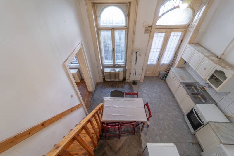 Eladó különleges, belső kétszintes lakás a Palotanegyed szívében!Budapest 8. kerület, Somogyi Béla utcában eladó egy 68 nm hasznos alapterületű, belső kétszintes lakás egy klasszikus, körfolyosós polgári ház első emeletén.A lakás eredetileg 5 méteres belmagasságának köszönhetően egy praktikus galériaszint került kialakításra, ahol 220 cm-es belmagasság biztosítja a kényelmes mindennapokat.Az alsó és felső szint jól kihasználható tereket kínál, így ideális lehet saját otthonnak vagy befektetésnek egyaránt. A fürdő és a WC egy helyiségben található.Központi, mégis csendes elhelyezkedése miatt tökéletes választás azoknak, akik a belváros nyüzsgését szeretnék élvezni gyalogtávolságra a Blaha Lujza tértől, metró- és villamosmegállóktól, egyetemektől és éttermektől.Főbb jellemzők:Kétszintes lakás, összesen 68 nm használható terület5 méteres belmagasság, galériaszint 200 cm belmagassággalElső emelet, körfolyosós, polgári házFrekventált elhelyezkedés, kiváló közlekedésAlacsony rezsi, jó beosztás, világos terekIdeális választás befektetőknek, fiatal pároknak vagy első lakásnak!