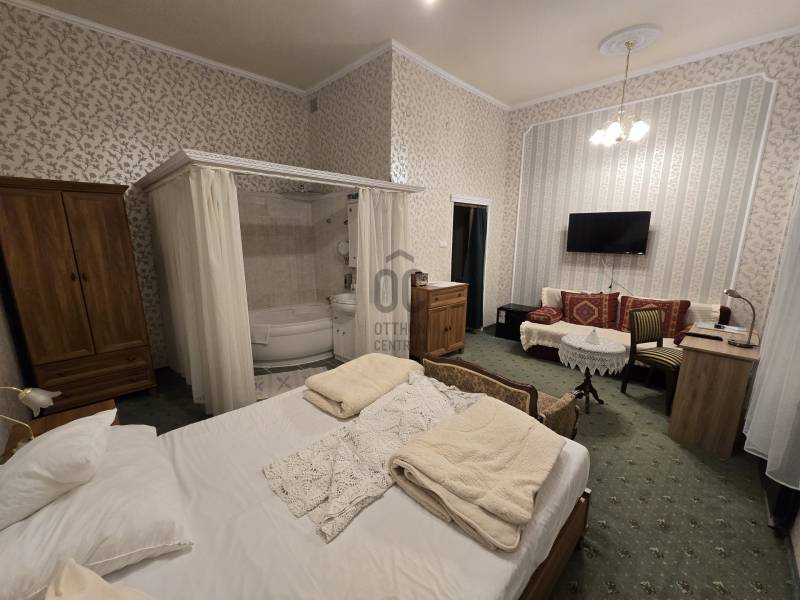 Főúri kényelem Misefán – lépjen be a klasszicizmus világába a misefai Fábiánics-kastélyban!A mindössze alig 260 lelket számláló Misefa a zalai dombok ölelésében fekszik, a nyugalom és az idill szigete. Kiváló elhelyezkedésének köszönhetően ugyanakkor könnyedén elérhetők olyan nagyobb városok, mint Zalaegerszeg, Keszthely, vagy éppen a hévízi és kehidakustányi gyógyfürdők. A Zala vármegyei község a 76. számú főút mentén, Makovecz Imre apai szülőfaluja, Nagykapornak szomszédságában fekszik.A 13. század óta lakott Misefa legfőbb nevezetessége a XIX. században épült Fábiánics-kastély, amely Fábiánics Ignác, királyi főtanácsos és főjegyzőnek köszönheti létrejöttét. A kastély folyamatosan használatban, fejlesztve és szépítve volt, míg végül Zala vármegye főispánja, és az Első Magyar Takarékpénztár egyik alapítója, Bosnyák Géza keze nyomán elnyerte a ma is látható klasszicista pompáját. A második világháború alatt ugyanakkor sanyarú sorsra jutott a pompázatos épület: majorsági épületeit lebontották. Régi fényének visszaállítása jelenlegi tulajdonosainak köszönhető, akik 1998-ban négycsillagos kastélyszállót alakítottak ki benne.Az 1650 négyzetméretes épület magával ragadó látványa már a Foglár-csatorna hídján átkelve elénk tárul, a 6048 négyzetméteres területre egy impozáns kapun léphetünk be. A kastélyban 14 vendégszoba és 5 lakosztály található, tetőtere igény esetén további 6 lakosztály kialakítását is lehetővé teszi, amelyhez a lépcsőház és a födém előkészítése már megtörtént. Az épület konferenciateremmel, történelmi hangulatot árasztó, kandallóval felszerelt káprázatos könyvtárteremmel, télikerttel, és egy pezsgőfürdővel, valamint finn- és infraszaunával felszerelt wellness részleg is található, így a történelmi hangulat és a modern kor kényelme kéz a kézben járnak.A 400 négyzetméteres csehsüveg-boltozatú hajdani borospince ma látványkonyhával működő étteremként funkcionál, ahol a régi magyar és nemzetközi ételkülönlegességek és a vadspecialitások mellé az ország legjobb borait kóstolhatjuk. Az étterem nagy méretéből kifolyólag csoportok fogadására is alkalmas.A kastély fűtésrendszerét jelentős anyagi és energiaráfordítással 2019-ben korszerűsítették, amelynek során napkollektorokkal is felszerelték az épületet. Az ingatlan felújított, műszakilag teljesen korszerűsített, esetlegesen a vizesblokkok igényelnek némi frissítést.A kastélyt egy több mint 200 éves őspark övezi, amely lélegzetelállító flórájával önmagában is idilli helyet kínál a pihenésre és a feltöltődésre, de számos egyéb kényelmi elemmel is rendelkezik, úgy, mint nyári grillvendéglő, szabadtéri, fűthető úszómedence és pezsgőfürdő.A kastély szomszédságában egy 10 éve telepített, 4 hektáros arborétum, valamint 2 darab 2400-2400 négyzetméretes, összközműves, parkosított, 30%-os beépíthetőségű belterületi telek, illetve egy 210 négyzetméteres családi ház is található, amelyek opcionálisan mind megvásárolhatók a kastéllyal együtt, ezáltal tovább bővítve a kastélyszállóban eleve rendelkezésre álló impozáns lehetőségeket.Az ingatlan tulajdoni viszonyai rendezettek, azonnal birtokba vehető. Tökéletes választás befektetési céllal a szállodaipar, a turizmus és vendéglátás szférájában keresőknek, de könnyedén átalakítható egészségügyi, rekreációs vagy akár szociális funkcióval bíró központnak, emellett a tágas tereket és a letisztult, klasszicista stílust kedvelők számára családi otthonnak is kiváló választás.Ne habozzon, hiszen az ingatlan iránti érdeklődés folyamatosan növekszik! Kérdés esetén bátran keressen minket, és tapasztalt csapatunk örömmel áll rendelkezésére, hogy segítsen Önnek a legjobb döntés meghozatalában.