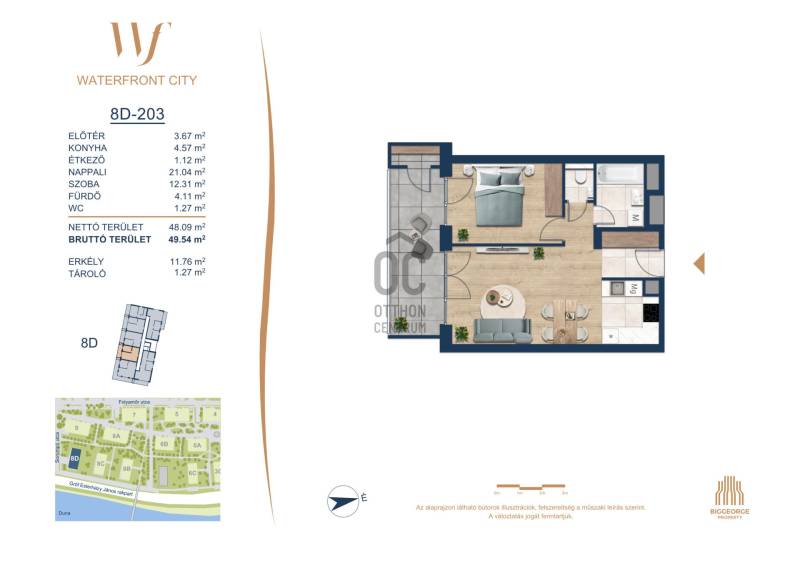 Projekt bemutatásaA projektrőlA Waterfront City egy új, modern városnegyed a 3. kerületben, ahol a természet közelsége és a városi kényelem tökéletes egyensúlyban van. A Duna-part közvetlen szomszédságában elhelyezkedő fejlesztés különleges atmoszférát kínál: a sétányt új épületek határolják, üzletekkel, kávézókkal és szolgáltatásokkal, amelyek élhető közösségi teret teremtenek.A 13 emeletes lakóépületből lenyűgöző örökpanoráma nyílik a budai hegyekre és a folyóra, a tágas teraszok pedig ideálisak a pihenéshez vagy a baráti összejövetelekhez. A zöldtetők, parkosított terek és fenntartható megoldások – mint az energiatakarékos rendszerek és okos otthon funkciók – mind hozzájárulnak a modern, környezettudatos életstílushoz.Látogass el értékesítési irodánkba, és tekintsd meg a városnegyed makettjét személyesen! Ismerd meg, milyen lesz az élet Budapest egyik legizgalmasabb új fejlesztésében!Óbuda szívébenKépzeld el, ahogy egy napsütéses délelőttön Óbuda szívében sétálsz, a Duna közelsége frissítően hat rád, miközben a Folyamőr utca, a Miklós tér és a Bogdáni út által határolt, öt hektáros területre érsz. A levegőben ott van a város történelme, mégis minden részletében a jövő hívogat.A 50 000 négyzetméteres területen egy hangulatos sétány vezet végig, amely egyenesen az óbudai Fő térre visz – mindössze 600 méterre. Ez a sétány nem csupán összeköt, hanem élményt nyújt: a Kolosy térről induló Óbudai Promenád részeként a város egyik legélhetőbb, legpezsgőbb szakaszán haladsz végig. És ha biciklivel érkeznél? A nemzetközi kerékpárút is itt halad el, Szentendre felé vezetve.Az 5. ütemben épülő 149 lakás mindegyike egyedi hangulatot kínál. Ahogy belépsz egy-egy otthonba, a hatalmas üvegfelületeken át beáradó fény és a tágas, szellős terek azonnal magukkal ragadnak. A kilátás? A Kaszap István park zöldje nyújt békét, míg a felsőbb emeletekről a Budai-hegység örökpanorámája tárul eléd – minden nap egy új festmény az ablakodban.A 6. ütemben 316 modern lakás épül, tágas teraszokkal és lenyűgöző kilátással a Dunára és a budai hegyekre. A lakók kényelmét őrszolgálat, kamerarendszer, mélygarázs, vendéglátóhelyek, belső park, játszótér és E-autó töltők szolgálják. Ez a projekt utolsó üteme, amely még közvetlen Duna-parti kapcsolattal rendelkezik.