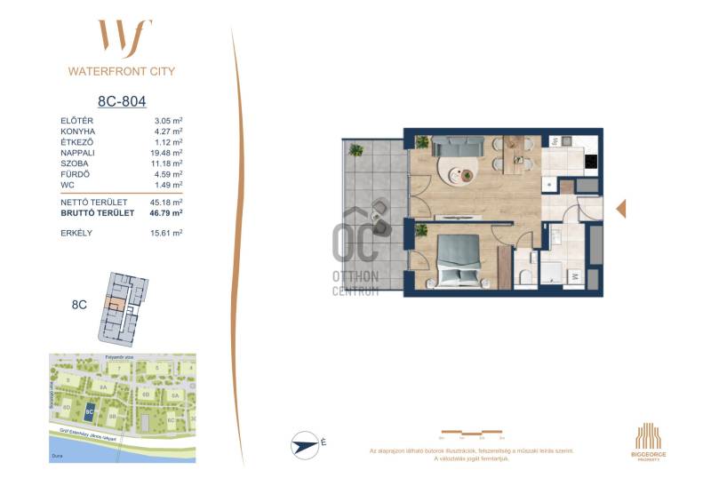 Projekt bemutatásaA projektrőlA Waterfront City egy új, modern városnegyed a 3. kerületben, ahol a természet közelsége és a városi kényelem tökéletes egyensúlyban van. A Duna-part közvetlen szomszédságában elhelyezkedő fejlesztés különleges atmoszférát kínál: a sétányt új épületek határolják, üzletekkel, kávézókkal és szolgáltatásokkal, amelyek élhető közösségi teret teremtenek.A 13 emeletes lakóépületből lenyűgöző örökpanoráma nyílik a budai hegyekre és a folyóra, a tágas teraszok pedig ideálisak a pihenéshez vagy a baráti összejövetelekhez. A zöldtetők, parkosított terek és fenntartható megoldások – mint az energiatakarékos rendszerek és okos otthon funkciók – mind hozzájárulnak a modern, környezettudatos életstílushoz.Látogass el értékesítési irodánkba, és tekintsd meg a városnegyed makettjét személyesen! Ismerd meg, milyen lesz az élet Budapest egyik legizgalmasabb új fejlesztésében!Óbuda szívébenKépzeld el, ahogy egy napsütéses délelőttön Óbuda szívében sétálsz, a Duna közelsége frissítően hat rád, miközben a Folyamőr utca, a Miklós tér és a Bogdáni út által határolt, öt hektáros területre érsz. A levegőben ott van a város történelme, mégis minden részletében a jövő hívogat.A 50 000 négyzetméteres területen egy hangulatos sétány vezet végig, amely egyenesen az óbudai Fő térre visz – mindössze 600 méterre. Ez a sétány nem csupán összeköt, hanem élményt nyújt: a Kolosy térről induló Óbudai Promenád részeként a város egyik legélhetőbb, legpezsgőbb szakaszán haladsz végig. És ha biciklivel érkeznél? A nemzetközi kerékpárút is itt halad el, Szentendre felé vezetve.Az 5. ütemben épülő 149 lakás mindegyike egyedi hangulatot kínál. Ahogy belépsz egy-egy otthonba, a hatalmas üvegfelületeken át beáradó fény és a tágas, szellős terek azonnal magukkal ragadnak. A kilátás? A Kaszap István park zöldje nyújt békét, míg a felsőbb emeletekről a Budai-hegység örökpanorámája tárul eléd – minden nap egy új festmény az ablakodban.A 6. ütemben 316 modern lakás épül, tágas teraszokkal és lenyűgöző kilátással a Dunára és a budai hegyekre. A lakók kényelmét őrszolgálat, kamerarendszer, mélygarázs, vendéglátóhelyek, belső park, játszótér és E-autó töltők szolgálják. Ez a projekt utolsó üteme, amely még közvetlen Duna-parti kapcsolattal rendelkezik.