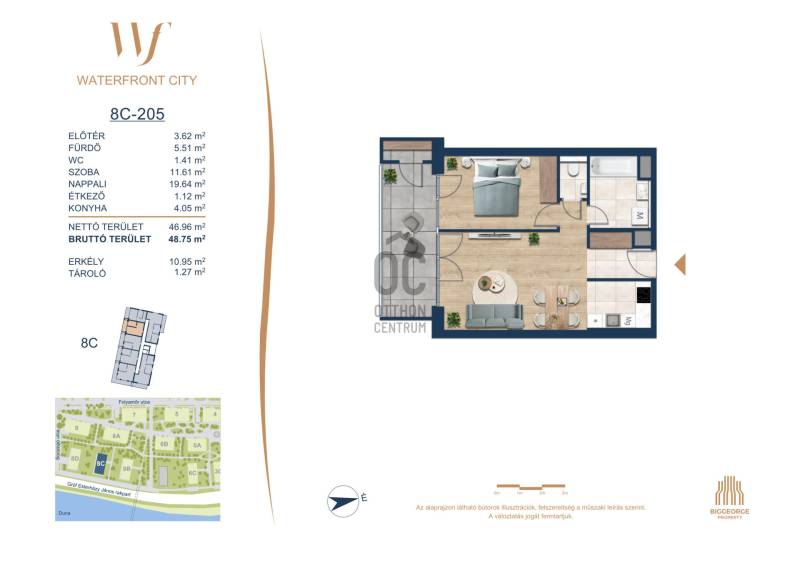 Projekt bemutatásaA projektrőlA Waterfront City egy új, modern városnegyed a 3. kerületben, ahol a természet közelsége és a városi kényelem tökéletes egyensúlyban van. A Duna-part közvetlen szomszédságában elhelyezkedő fejlesztés különleges atmoszférát kínál: a sétányt új épületek határolják, üzletekkel, kávézókkal és szolgáltatásokkal, amelyek élhető közösségi teret teremtenek.A 13 emeletes lakóépületből lenyűgöző örökpanoráma nyílik a budai hegyekre és a folyóra, a tágas teraszok pedig ideálisak a pihenéshez vagy a baráti összejövetelekhez. A zöldtetők, parkosított terek és fenntartható megoldások – mint az energiatakarékos rendszerek és okos otthon funkciók – mind hozzájárulnak a modern, környezettudatos életstílushoz.Látogass el értékesítési irodánkba, és tekintsd meg a városnegyed makettjét személyesen! Ismerd meg, milyen lesz az élet Budapest egyik legizgalmasabb új fejlesztésében!Óbuda szívébenKépzeld el, ahogy egy napsütéses délelőttön Óbuda szívében sétálsz, a Duna közelsége frissítően hat rád, miközben a Folyamőr utca, a Miklós tér és a Bogdáni út által határolt, öt hektáros területre érsz. A levegőben ott van a város történelme, mégis minden részletében a jövő hívogat.A 50 000 négyzetméteres területen egy hangulatos sétány vezet végig, amely egyenesen az óbudai Fő térre visz – mindössze 600 méterre. Ez a sétány nem csupán összeköt, hanem élményt nyújt: a Kolosy térről induló Óbudai Promenád részeként a város egyik legélhetőbb, legpezsgőbb szakaszán haladsz végig. És ha biciklivel érkeznél? A nemzetközi kerékpárút is itt halad el, Szentendre felé vezetve.Az 5. ütemben épülő 149 lakás mindegyike egyedi hangulatot kínál. Ahogy belépsz egy-egy otthonba, a hatalmas üvegfelületeken át beáradó fény és a tágas, szellős terek azonnal magukkal ragadnak. A kilátás? A Kaszap István park zöldje nyújt békét, míg a felsőbb emeletekről a Budai-hegység örökpanorámája tárul eléd – minden nap egy új festmény az ablakodban.A 6. ütemben 316 modern lakás épül, tágas teraszokkal és lenyűgöző kilátással a Dunára és a budai hegyekre. A lakók kényelmét őrszolgálat, kamerarendszer, mélygarázs, vendéglátóhelyek, belső park, játszótér és E-autó töltők szolgálják. Ez a projekt utolsó üteme, amely még közvetlen Duna-parti kapcsolattal rendelkezik.