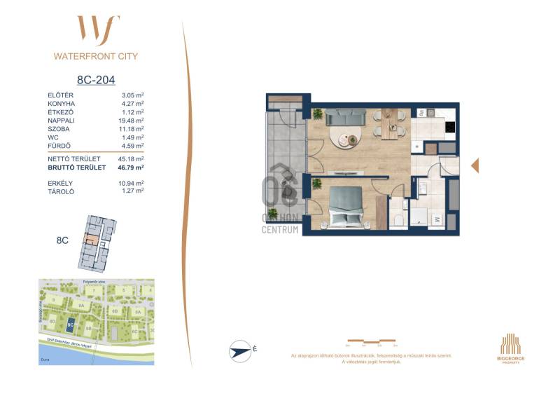 Projekt bemutatásaA projektrőlA Waterfront City egy új, modern városnegyed a 3. kerületben, ahol a természet közelsége és a városi kényelem tökéletes egyensúlyban van. A Duna-part közvetlen szomszédságában elhelyezkedő fejlesztés különleges atmoszférát kínál: a sétányt új épületek határolják, üzletekkel, kávézókkal és szolgáltatásokkal, amelyek élhető közösségi teret teremtenek.A 13 emeletes lakóépületből lenyűgöző örökpanoráma nyílik a budai hegyekre és a folyóra, a tágas teraszok pedig ideálisak a pihenéshez vagy a baráti összejövetelekhez. A zöldtetők, parkosított terek és fenntartható megoldások – mint az energiatakarékos rendszerek és okos otthon funkciók – mind hozzájárulnak a modern, környezettudatos életstílushoz.Látogass el értékesítési irodánkba, és tekintsd meg a városnegyed makettjét személyesen! Ismerd meg, milyen lesz az élet Budapest egyik legizgalmasabb új fejlesztésében!Óbuda szívébenKépzeld el, ahogy egy napsütéses délelőttön Óbuda szívében sétálsz, a Duna közelsége frissítően hat rád, miközben a Folyamőr utca, a Miklós tér és a Bogdáni út által határolt, öt hektáros területre érsz. A levegőben ott van a város történelme, mégis minden részletében a jövő hívogat.A 50 000 négyzetméteres területen egy hangulatos sétány vezet végig, amely egyenesen az óbudai Fő térre visz – mindössze 600 méterre. Ez a sétány nem csupán összeköt, hanem élményt nyújt: a Kolosy térről induló Óbudai Promenád részeként a város egyik legélhetőbb, legpezsgőbb szakaszán haladsz végig. És ha biciklivel érkeznél? A nemzetközi kerékpárút is itt halad el, Szentendre felé vezetve.Az 5. ütemben épülő 149 lakás mindegyike egyedi hangulatot kínál. Ahogy belépsz egy-egy otthonba, a hatalmas üvegfelületeken át beáradó fény és a tágas, szellős terek azonnal magukkal ragadnak. A kilátás? A Kaszap István park zöldje nyújt békét, míg a felsőbb emeletekről a Budai-hegység örökpanorámája tárul eléd – minden nap egy új festmény az ablakodban.A 6. ütemben 316 modern lakás épül, tágas teraszokkal és lenyűgöző kilátással a Dunára és a budai hegyekre. A lakók kényelmét őrszolgálat, kamerarendszer, mélygarázs, vendéglátóhelyek, belső park, játszótér és E-autó töltők szolgálják. Ez a projekt utolsó üteme, amely még közvetlen Duna-parti kapcsolattal rendelkezik.