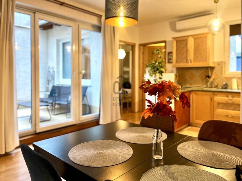KIADÓ a VI. kerületben, a Dessewffy utcában egy felújított, BÚTOROZOTT, gépesített konyhával ellátott, TERASZOS lakás, ami egy LIFTes házban található. A 3. emeleti, 58 m2-es, 2 szobás lakásban egy amerikai konyhás, rendkívül tágas, étkezős nappali, egy kényelmes, hangulatos, gardróbos hálószoba, egy fürdőkádas fürdőszoba, egy vendég wc-mosókonyha és kényelmes előszoba is található. Ezen felül pedig tágas terasz nyújt lehetőséget a kikapcsolódásra. Az ingatlan:-a főtést cirkó kazán biztosítja,-LÉGKONDÍCIONÁLÓval ellátott,-hűtőszekrény, tűzhely, sütő, kávéfőző, mikróhullámú sütő is található a kényelmes konyhában. -A nappaliban kanapé, étkezőasztal székekkel, fotelek, televízió szolgálja a kényelmet. -A hálószobában pedig franciaágy és egy hatalmas gardróbszekrény is helyet kapott.--A fürdőkádas, wc-s nagyfürdőszobán kívül az előszobában egy vendég wc-mosókonyha is található az ingatlanban, illetve a kényelmes méretű előszobában egy tárolóhelyiség is. -A 6 m2-es teraszon kerti bútorok kaptak helyet.A ház:-liftes-csendes, jó lakóközösség-udvaron: biciklitároló-lépcsőházban:biztonsági kameraA környék:Belső-Terézváros = kiváló elhelyezkedés és közlekedés.Oktogon és Nyugati pályaudvar 3-5 perc séta távolságra található, a ház lakói ennek minden előnyét élvezik de nyugalmuk mégis megmarad, mivel egy csendes utcáról van szó.Kiemelten jó közlekedés és elhelyezkedés, minden fontos kiszolgáló és szociális egység sétatávolságban elérhető: bevásárlóközpont, pályaudvar, kávézók, éttermek, színházak, boltok. Az ingatlan ideális 1 vagy 2 személy számára. A beköltözés az első havi bérleti díjjal (320.000 Ft)  és 2 havi kaucióval lehetséges.A hirdetésben található bérleti díjon felüli költségek:+ 16 000 közösköltség, amiben benne van a víz használat,+villanyszámla (használat alapján kerül elszámolásra)+gázszámla (használat alapján kerül elszámolásra)+vízdíj, (szintén felhasználás alapján. )+ igény szerinti internet és tv előfizetési csomag.Költözhető január 2-től.Egyedi igényekre szabott lakáshitelekkel állunk rendelkezésére.Bankfüggetlen Hitelcentrumunk az országban elérhető összes bank és hitelintézet ajánlatát versenyezteti az Ön számára díjmentesen.Munkatársaink nagy szakmai tapasztalattal, teljes körű CSOK PLUSZ és OTTHON START PROGRAM ügyintézéssel várják Önt előre egyeztetett időpontban akár a normál munkaidő után is.