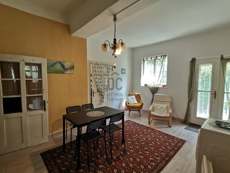 Révfülöp központjában, 10 perces sétára a kikötőtől, orvosi rendelőtől, patikától, városházától és a postától, egy csodálatos, régi, romantikus nagypolgári villaépületet talál, a Palágyi-Villát.Az 1920-as évek táján épült, hatalmas télikertes, kő falazatú ház az államosítást követően az önkormányzat által újra magánkézbe került. Két család lakta az \'50-es évektől, egy új lakrésszel kibővítve.Ezen formájában maradt meg a mai napig: az eredeti épület, saját kerttel az egyik családé; a bővítés, szintén saját kertrésszel a másiké, mindez hivatalos használati megosztással!Mindkét részhez saját kapu, autóbehajtó és privát kert tartozik!A régi villaépület, amelynek nettó hasznos alapterülete 105 nm, és 453 nm saját területen fekszik, most eladó! (tehát az épület nagyobbik része)A házat nagy belmagasság (310 cm) és tágas terek jellemzik, sem ázás, sem vizesedés nem tapasztalható, statikailag kifogástalan.A régi, hatalmas ablakos télikert déli tájolású, még télen is besüti a nap, a belső szobákat így védi és hőszigeteli.A háznak két bejárata van, egyik a télikert felől, másik a hátsó udvar felől. Összesen 4 nagy szoba (étkező, nappali, 2 hálószoba), egy fürdőszoba, egy külön wc, egy gardróbszoba és egy konyha található még benne.Elosztása praktikus, kényelmes színhelye lehet a révfülöpi nyaraknak még egy nagyobb család számára is.A kertben gyümölcsfák és dísznövények vannak, a hátsó udvari részben egy fedett tárolóhelyiség és egy nem használt kertrész is van (egykor baromfik számára)Az elektromos hálózat 15A, egy éve teljesen felújítva, a régi vezetékek mind kicserélve!Fűtéséről kályhák tudnak gondoskodni, mivel jópár éve csak nyaralóként használták, ezek ki lettek véve, az utóbbi időben elektromos fűtéssel oldották meg, ha fűteni kellett.Gáz a telken belül van, de nem lett bevezetve, a szennyvízhálózatra nem lett bekötve az épület, jelenleg emésztő van.Mesés, békés hangulatú ingatlan, amely kevés ráfordítással is élvezhető, de akár kiadásra is tökéletes,