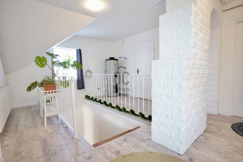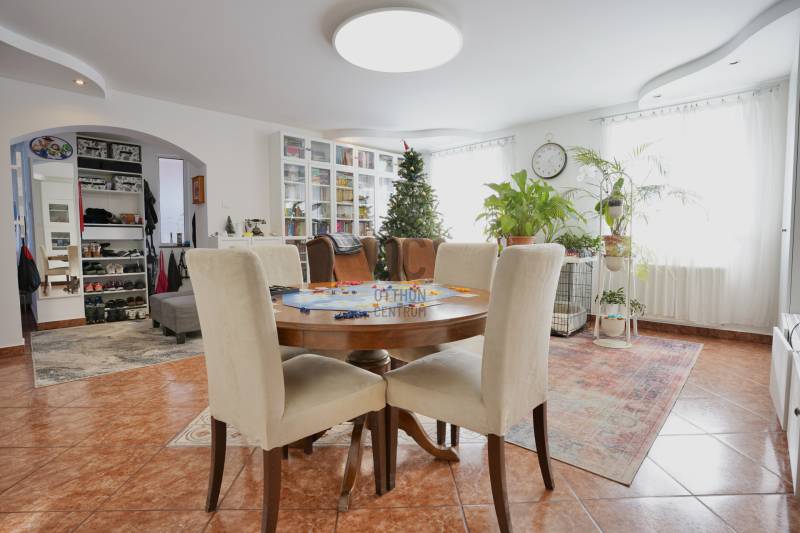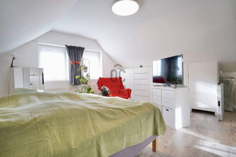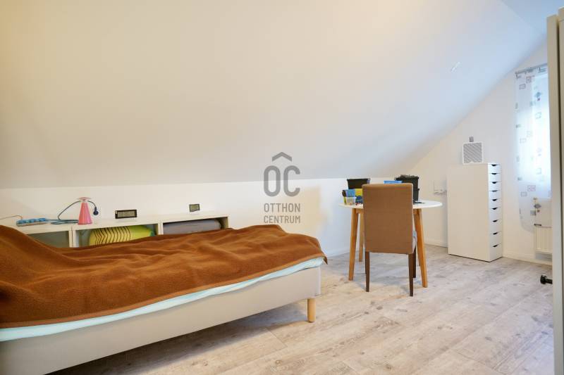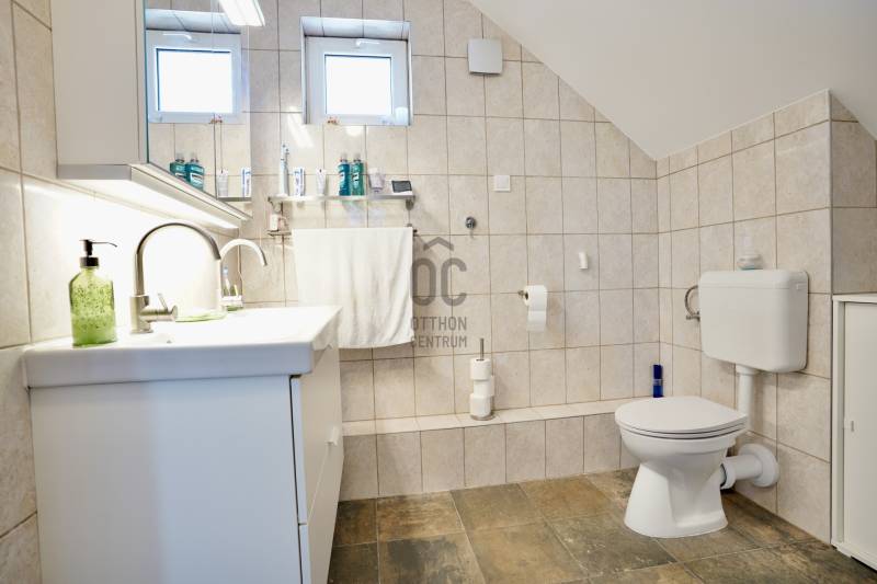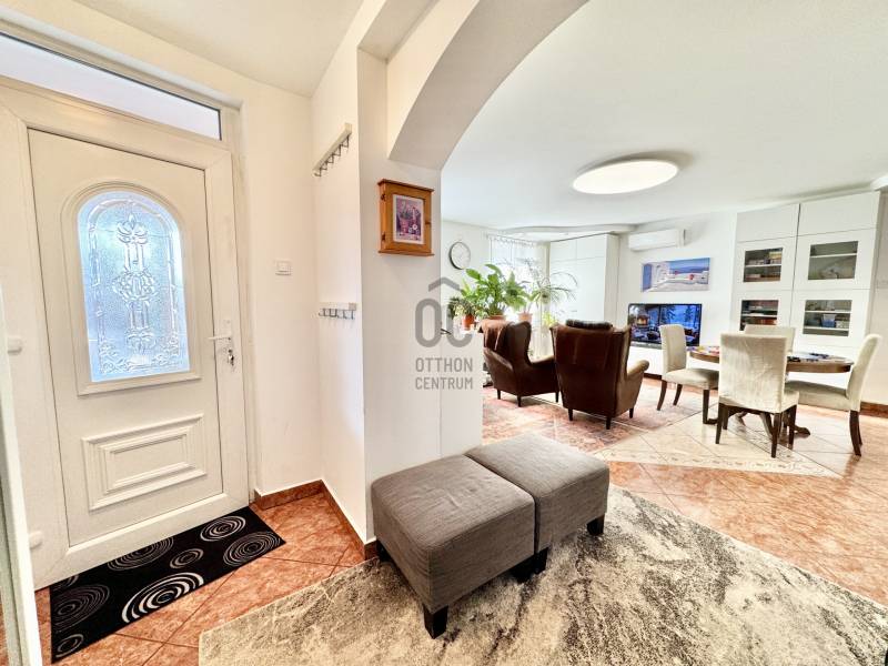 Családbarát, felújított otthon Vácon – nyugalom, tér és modern komfort egy helyen, A+++-os energetikai besorolással!Vác csendes, kertvárosi környezetében eladó egy világos, tágas, igényesen felújított családi ház, amely ideális választás gyermekes családok számára, mindössze 20 percre Budapesttől. Az amerikai konyhás nappalival és négy különálló hálószobával kialakított ingatlan kiváló térszervezésének köszönhetően hosszú távon is kényelmes otthont biztosít, akár több generáció együttélésére is.A 2005-ben épült, masszív Porotherm téglaház 2022 óta folyamatos korszerűsítésen esett át. A 255 cm-es belmagasság és a jó tájolás világos, barátságos belső tereket eredményez. A mindennapi komfortot tovább növeli, hogy minden hálószoba, valamint a nappali is klimatizált, így az év minden szakában kellemes hőmérséklet biztosított.Az energiatakarékos üzemeltetésről 10 kW-os, szaldós elszámolású napelemes rendszer, automata pelletkazán szobatermosztáttal, radiátoros központi fűtés, valamint a földszinten padlófűtés gondoskodik. A melegvízellátást 200 literes Hajdu indirekt tárolós bojler biztosítja, az elektromos hálózat korszerűsített. Az ásott kútról működő öntözőrendszer alacsony fenntartási költségek mellett teszi gondozhatóvá a kertet.A földszinten egy tágas nappali–étkező–amerikai konyha alkotja a családi élet központját, továbbá egy külön hálószoba saját fürdőszobával, amely ideális lehet nagyszülőnek, vendégnek vagy otthoni irodának. Előszoba, kamra és külön WC egészíti ki a szintet. Az emeleten három jól bútorozható hálószoba, fürdőszoba és közlekedő található, míg az alagsor tárolóként és kazánházként funkcionál.A sík, körbekerített kert biztonságos játszóteret kínál gyermekeknek, miközben gyümölcsfák, bogyós növények és szőlő teremtik meg a természetközeli életérzést. A fedett (13 m²) és a tágas, nyitott (35 m²) terasz ideális helyszín családi és baráti összejövetelekhez. Az udvaron 8 m²-es tároló, egy 3,5×7 méteres gépkocsibeálló, valamint további parkolási lehetőség áll rendelkezésre.Az M2-es autóút mindössze 2 percre található, így Budapest gyorsan elérhető, miközben a környék nyugodt, rendezett, kifejezetten családbarát. Iskola, óvoda, bevásárlási lehetőségek rövid időn belül elérhetők, így ez az ingatlan valóban ideális választás azoknak, akik hosszú távra keresnek biztonságos, szerethető otthont.A ház megvásárlásához a megfelelő önerővel „már rendelkező”, de ezenfelül akár ***banki hitelfelvétellel, akár *** CSOK+ , akár ***lakáskassza megtakarítással és akár a ***babaváró program keretében felvehető / felhasználható pénzösszegből vásárló személyek megkeresését is szeretettel várom!Ha a leírtak és a látottak alapján felkeltettem az érdeklődését, keressen bizalommal akár hétvégén is!***Az igénylési / felhasználási feltételekkel kapcsolatban, valamint ezek ügyintézésben is, az Otthon Centrum hitelközvetítő munkatársával együtt, készséggel állok az Ön szíves rendelkezésére!